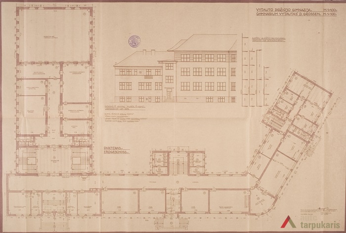 [6] Naujai statomi Klaipėdos Vytauto Didžiojo gimnazijos rūmai. Lietuvos Aidas, 1934, sausio 13.