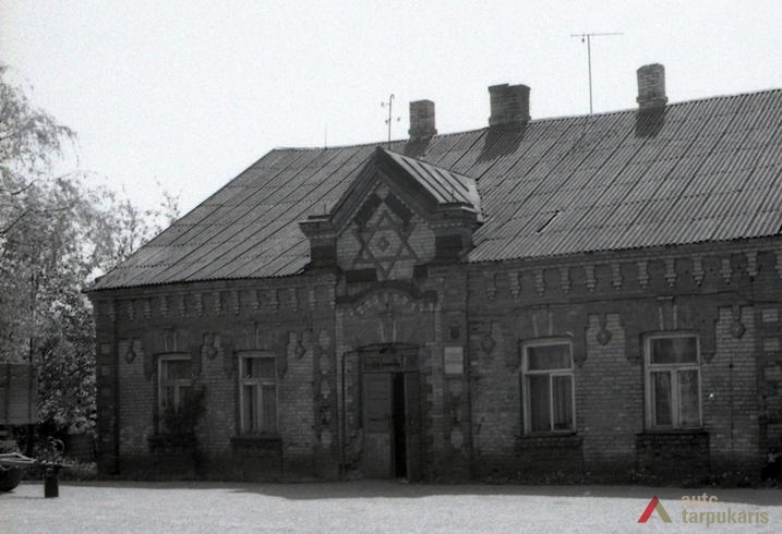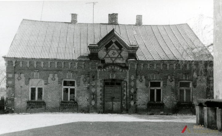 Pastatas vientiso tūrio, vienaukštis, su pastoge, dengtas dvišlaičiu šiferio stogu. Sienos sumūrytos iš plytų, netinkuotos, cokolis akmens mūro. Planas stačiakampis, su laiptais vidurinėje dalyje. Pagrindinis fasadas simetriškas, su rizalitu vidurinėje dalyje; portalas su dvivėrėmis medinėmis durimis, apjuostas raudonų plytų apvadais su užkarpomis. Fasado ir rizalito kampus akcentuoja mentės su įdubomis, rizalito viršuje kyla stačiašlaitis skydas, kuriame įkomponuota šešiakampė Dovydo žvaigždė (raudonų plytų). Angų sąramų viršutinė dalis kiek išlenkta ir aprėminta plačiais plytų apvadais su raktais; apatinė langų dalis paryškinta iškiliomis plokštumomis su įdubomis. Fasado viršų juosia platus frizas su modiljonų imitacija ir karnizas, sumūrytas iš trijų plytų eilių. Fasadui originalumo ir žaismingumo teikia dvispalviai dekoro elementai, sumūryti iš raudonų ir geltonų plytų bei įvairių formų įdubos. Kiti fasadai paprastesni, sumūryti iš geltonų plytų, netinkuoti, su kiek išlenktomis langų sąramomis. Talmudo mokykla – rabino namas – originalus istorizmo laikotarpio „plytų“ stiliaus pastatas.
