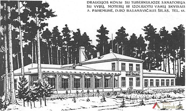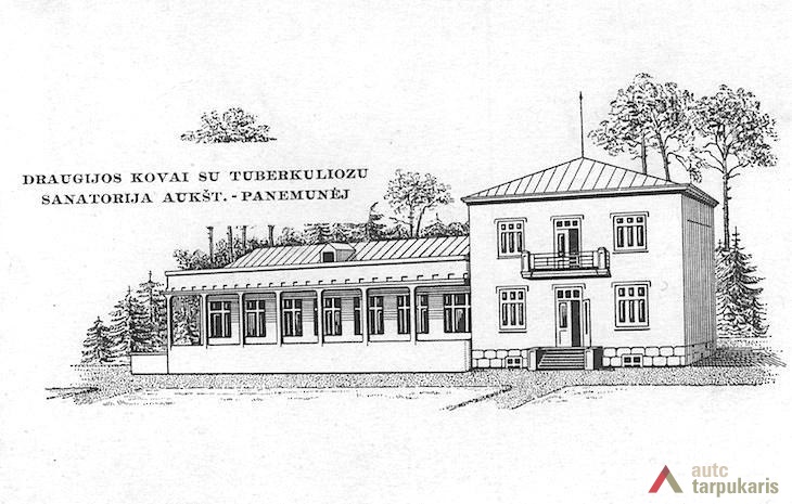 Kauno Panemunės šile, Jono Basanavičiaus parko pakraštyje, prie Vičiūnų kaimo (dab. Žuvėdrų al. ir Kruonio g. kampas), kuris su Aukštąja Panemune bei jos apylinkėmis pagal 1933 m. kurortų įstatymą buvo priskirtas „prie kurortų, ir todėl (...) tvarkomas pagal kurortų taisykles[1]”, 1930 m. atidaryta Draugijos kovai su tuberkulioze sanatorija. „Į atidarymą atsilankė daug svečių, (…) pramonininkų, finansininkų ir valdžios atstovai. (…) Draugijos pirmininkas D-ras K. Grinius atidarydamas sanatoriją, į susirinkusiuosius prabilo žodžiais, nušviečiančiais tuberkuliozo išsiplėtojimą Lietuvoje, gydymą ir gydymo įstaigas. (…) Pastatyta tiktai centralinė dalis. Išleista 130.000 litų. 1 ha žemės sklypą su 12 arų sodyba bei mūriniu namu sanatorijai davė valdžia. (...) Sanatorijai trūksta tik „sparnų”, kurių kiekvienas kainuos apie 50.000 litų. Draugijos susirinkimas nutarė padaryti pastangų, kad šiemet būtų pastatytas vienas sparnas”[2].