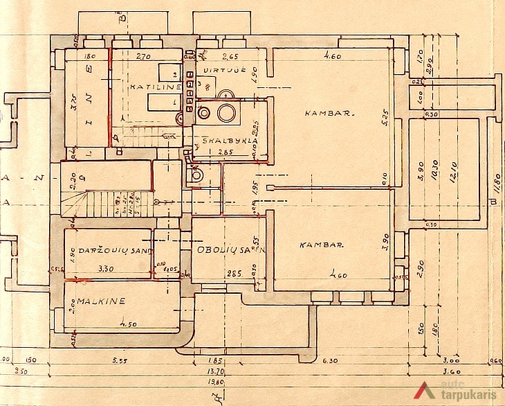Pastatas mūrinis, dviejų aukštų, su mansarda, gan giliai atitrauktas nuo gatvės erdviame stačiakampio formos sklype. Aukštame cokoliniame tarpsnyje įrengtas pagrindinis įėjimas. Laiptų sienelė raižyta ryškiomis įgilintomis tako linijomis. Panašūs elementai būdingi ir antrojo tarpsnio balkonui bei pastogei. Dekoratyviais rustais pabrėžta ir vertikali briauna, esanti prie pagrindinių durų bei pratęsta per antrąjį tarpsnį iki pastato stogo. Pagrindinio fasado kairėje – atsikišęs lenktos formos rizalitas. Pusrūsyje ir abiejuose aukštuose suplanuotos patalpos: cokoliniame aukšte įrengti du kambariai, virtuvė, skalbykla, obuolių ir daržovių sandėliai, malkinė bei katilinė; pirmame aukšte, virš pusrūsio katilinės, įrengra virtuvė, virš kambarių – valgomasis ir svečių erdvė bei erdvus darbo kabinetas; antras aukštas skirtas poilsiui, čia įrengti du miegamieji, dukters, vaikų, tetos kambariai bei, kaip ir pirmame aukšte, vonios kambarys.