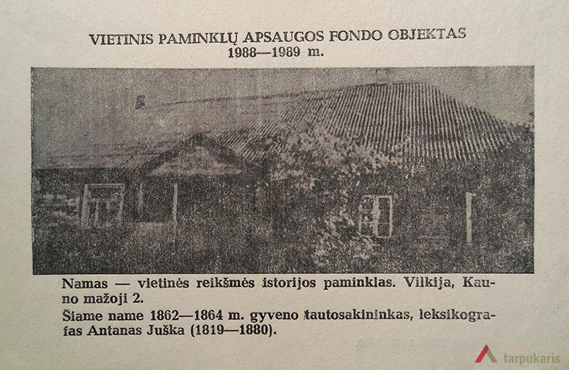 Daugiau kaip du šimtmečius pastatas išbuvo bažnyčios žinioje, klebonijoje gyveno dvasininkai, glaudėsi bažnyčios tarnai, iš kurių ryškiausią pėdsaką paliko 1862-1864 m. čia gyvenęs vienas žymiausių lietuvių tautosakininkų, etnografas, kalbininkas ir kunigas Antanas Juška – asmenybė, išlikusi ne vienos kartos atmintyje. Kunigaudamas Vilkijoje A. Juška rinko ir užrašinėjo lietuvių liaudies dainas, klebonijoje rinkdavosi dainų pateikėjos, „kuri iš moterų arba mergaičių daugiau ir gražesnių padainuodavo jam dainų, gaudavo dovanų: žiedą, šaukštą, saldumynų, riešučių ir t.t. Tokią dainininkę pramindavo „dainų karaliene“[3]. Gyvendamas Vilkijoje A. Juška taip pat rinko žodžius lietuvių-lenkų kalbų žodynui: „Kai Vilkijoje ėmė darytis pirmąją savo žodyno kopiją, technikos jo nežinota. Prisižodžiautąją medžiagą jis varstęs ant vielų ir šniūrelių, ištiestų nuo sienos iki sienos. Žmonės matydami pilnus kambarius prikarstytų popierėlių, ėmę skelbti apie „nemieruotą kun. Juškos skarbą“, kad net džiovinti ar vėdinti reikia „bumaškos“. O jis buvo grynas neturtis, niekados neturėjęs gero beneficiumo ir ką gaudamas, išleidžiąs mokytai folklorininko manijai rinkti ir rinkti be galo ir saiko, vis papildinėti, papildinėti savo rinkinius turtais, kurių vis naujų, vis įdomesnių aptikdavo naujose vietose“[4]. Apkaltintas ryšiais su sukilėliais, 1863 m. A. Juška iš čia išvežamas į Kauno kalėjimą.