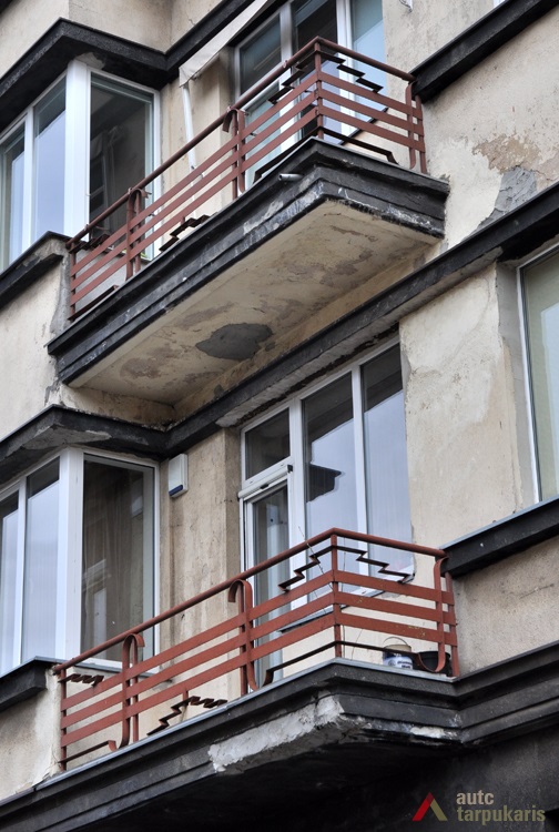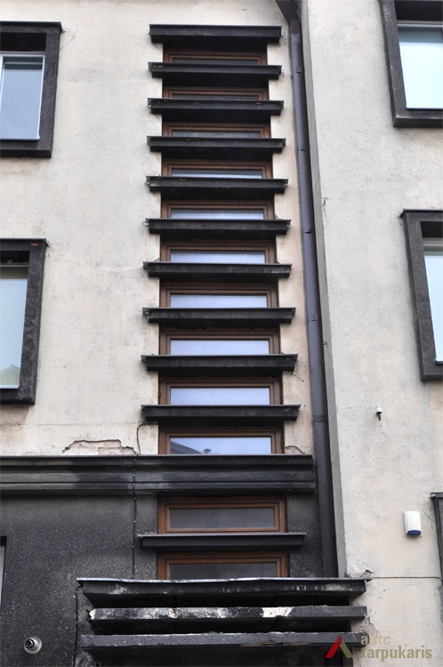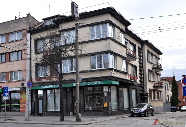Diplomuoto statybos inžinieriaus Osvaldo Tyliaus suprojektuotas pastatas – vienas charakteringiausių Kauno modernizmo mokyklos pavyzdžių. Objektą aplinkiniame kontekste išskiria kampiniai langai ir ryškūs tamsaus granitinio tinko langų apvadai. Toks sprendimas primena populiarų modernizmo kalbos elementą – ištisines langų juostas. Modernumo statiniui suteikia didelės pirmo aukšto vitrinos. Fasadą pagyvina originalus, art deco stilistikos metalinių balkono tvorelių raštas. Nors originalios lauko durys nėra išlikę, tačiau vis dar matome įėjimus puošiančius masyvius apvadus, laiptinė akcentuota horizantalių elementų ritmu. Kaip ir daugelyje to laikmečio statinių kiemo fasadas utilitarus, tikuotas paprastu tinku.