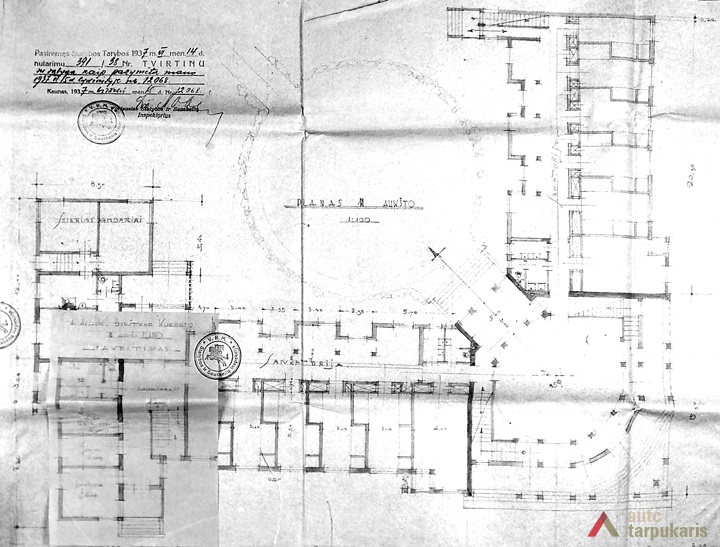 Po šios 1937 metais spaudoje pasirodžiusios žinutės, iš tiesų suskubta vykdyti naujų poilsio ir reabilitacijos objektų planavimą. Po metų Birštono pušyne įpusėti naujos medinės modernios sanatorijos (inž. Aleksandras Gordevičius), skirtos ligonių kasų apdraustųjų poilsiui, statybos darbai. „Jau išvestos sienos ir uždengtas stogas. Lieka atlikti vidaus įrengimo darbus ir pastatyti patalpas virtuvei ir valgyklai. Šie darbai vykdomi dabar.”[2] Kaip ir planuota, 1939 metais duris atvėrė Ligonių kasos sanatorija, su visais jai priklausančiais ūkiniais ir pagalbiniais statiniais (salė ir virtuvė) užėmusi net 11.800 kub.m. Naujojo poilsio komplekso statyboms Kauno Miesto Ligonių Kasa, Draudimo nuo nelaimingų atsitikimų kasa, Šiaulių apygardos ligonių kasos skyrė daugiau kaip 200 000 litų, na o visi sanatorijos statybos darbai kainavo 370 000 litų.[3]