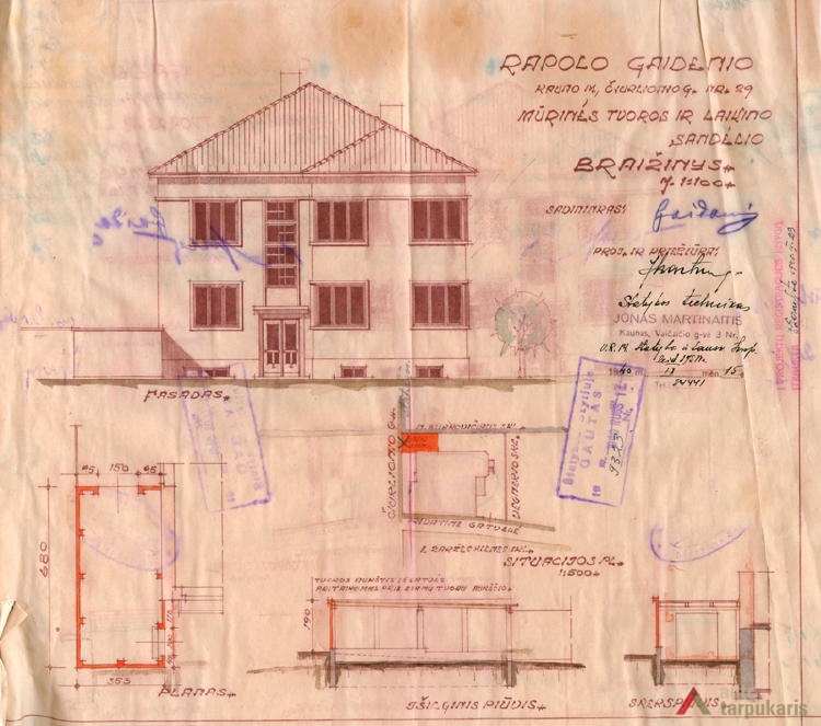 Prašymas “leisti pastatyti mūrinį vieno aukšto gyvenamą namą (ateityje numatoma pastatyti dar 2 aukštus)“[1] paduotas 1934 m. Tačiau Kauno miesto Statybos komisija nusprendė jo nepatenkinti, kadangi planuota statyti tik vieno aukšto namą, kas šioje teritorijoje nebuvo leidžiama[2]. Tuomet inžinieriui K. Sienkevičiui pavesta suprojektuoti „mūrinį dviejų aukštų namą, kainuosiantį 40.000 lt”[3]. Nors ir su tam tikrais pataisymais – statyba šį kartą leista. 1940 rugsėjo 17 d. dar buvo paduotas prašymas tvoros įrengimui. Namas tuomet jau priklausė Rapolui Gaideniui[4].