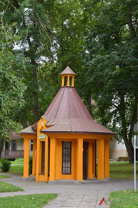 Ketvirtajame dešimtmetyje įrengta „Tulpės“ sanatorijos biuvetė yra reprezentatyvios architektūros, pabrėžiančios tuomet vyravusį požiūrį į pagrindinę kurorto egzistavimo priežastį – mineralinį vandenį. Dviejų patalpų, apskrito plano pastatas iš abiejų įėjimų pusių pratęstas lenktas pagrindinės struktūros formas atkartojančiomis lodžijomis, kurių kiekvieną sudaro keturios stačiakampės kolonos, laikančios masyvų karnizą. Priekiniame ir galiniame fasaduose tarp galerijų esančiose centrinėse dalyse yra iškyšos su laužtos formos frontonėliais. Kūginės formos stogą (su įgilinimais tarpuose tarp galerijų) užbaigia bokštelis, įmituojantis žibintą. Biuvetėje yra tiekiamas vanduo, savo sudėtimi panašus į istorinio „Vytauto” šaltinio versmę.