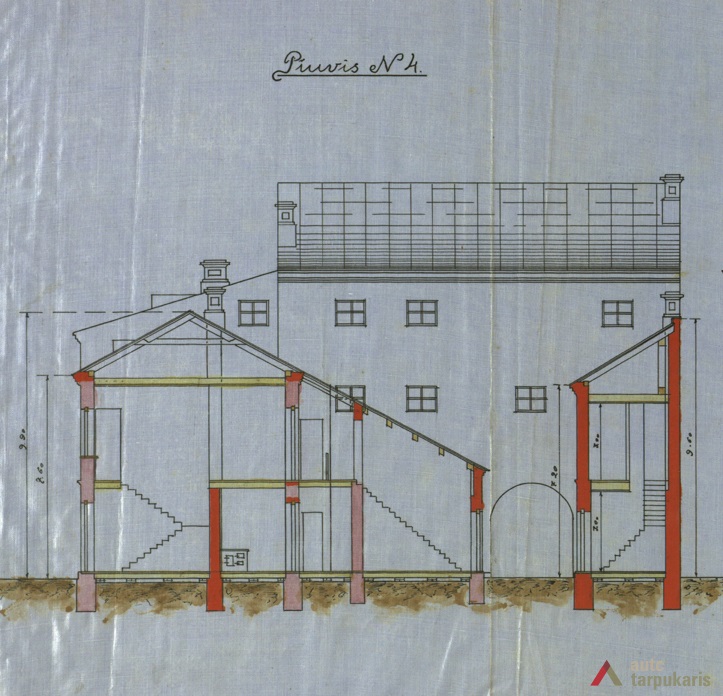 Iki XIX a. vidurio dabartiniame Daukšos g. 5 sklype stovėjo medinis pastatas. XIX a. viduryje gretimose teritorijose pradėjo formuotis mūrinis užstatymas. 1894 m. pagal Kauno gubernijos inžinieriaus architekto N. Andrejevo projektą[1] minimame sklype galu į M. Daukšos gatvę pastatytas dviejų aukštų mūrinis namas – svirnas. Naujasis statinys įterptas į jau stovėjusių mūrinių namų eilę ir užbaigė mūrinį perimetrinį šios gatvės užstatymą.