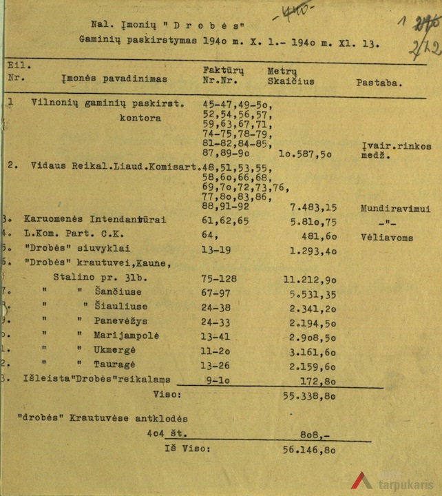 Paskutinį kartą tarpukariu fabrikas praplėstas 1939 m., pristatytas trijų aukštų korpusas pagal inž. V. Klimavičiaus projektą. Didžiausia vilnonių audinių gamykla to meto Lietuvoje buvo iliustratyviausias savos produkcijos populiarinimo pavyzdys. 1936 m. Laisvės alėjojos pastate nr. 57, bendrovė atidarė firminę medžiagų ir drabužių parduotuvę su siuvykla.