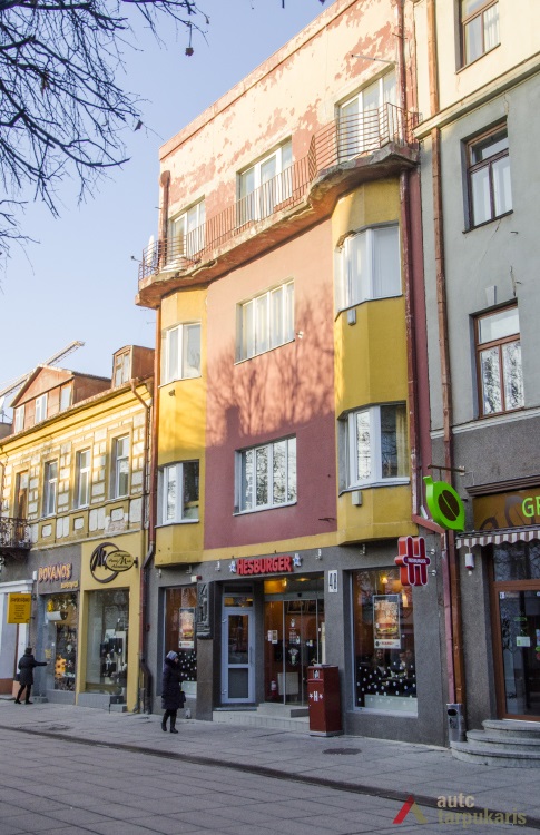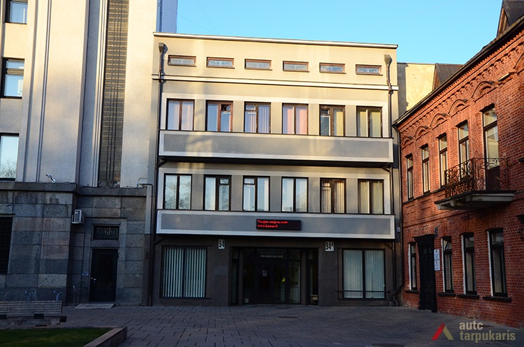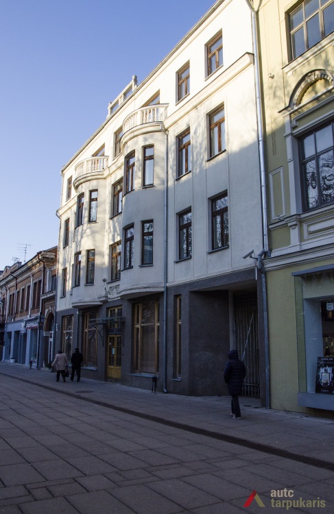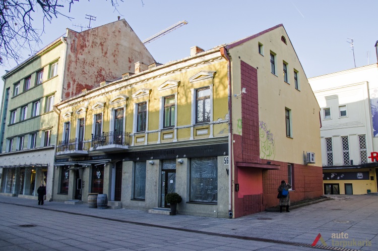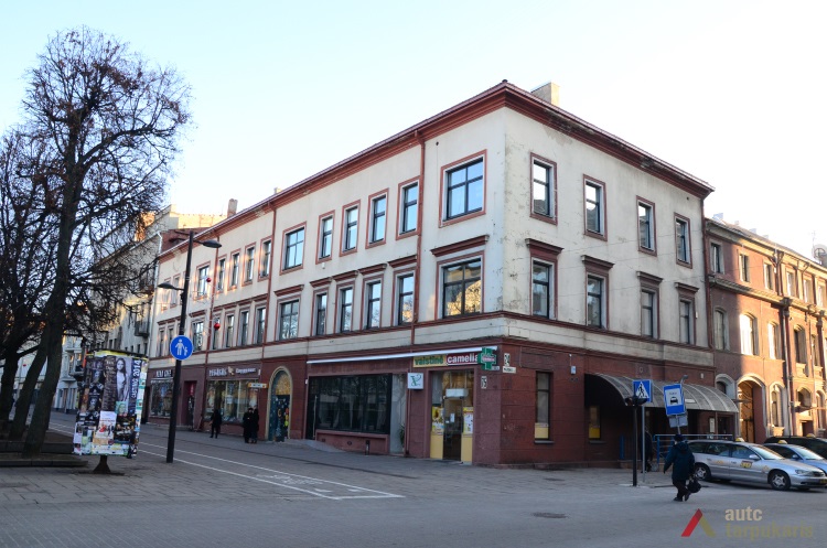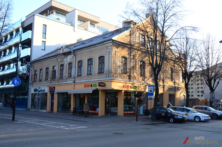 Pastatas Laisvės al. 82, kuriame veikė Mosiejaus Kagano moteriškų skrybėlių krautuvė ir Isaoko Aranovičiaus megztinių bei trikotažo dirbtuvė. 2014 m. P. T. Laurinaičio nuotr.