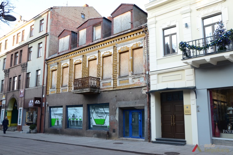 Pastatas Laisvės al. 27, kuriame veikė Leono Eitmano tekstilės krautuvė. 2014 m. P. T. Laurinaičio nuotr.