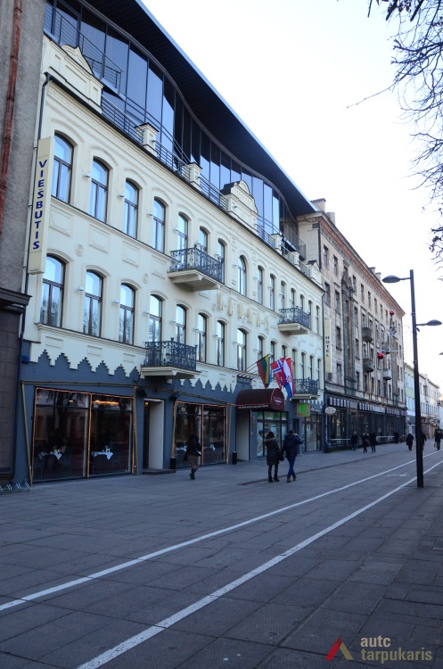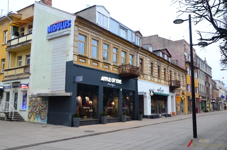 Pastatuose Laisvės al. 89, buvo įkurta Mosėjaus Svagalsono skrybėlių ir kepurių krautuvė ir Sonės Kacienės moteriškų rūbų siūvykla. 2014 m. P. T. Laurinaičio nuotr.