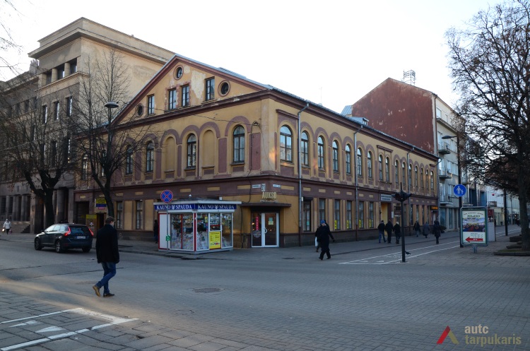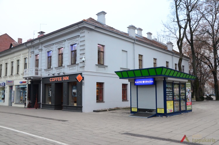 Pastatas Laisvės al. 18, kuriame veikė Karo invalidų krautuvė (specializavosi keuprėse, ženkluose, žetonuose). 2014 m. P. T. Laurinaičio nuotr.