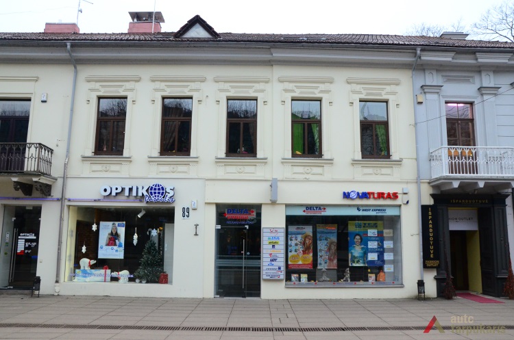 Pastatai Laisvės al. 89, kur veikė Mosėjaus Svagalsono skrybėlių ir kepurių krautuvė ir Sonės Kacienės moteriškų rūbų siūvykla. 2014 m. P. T. Laurinaičio nuotr.