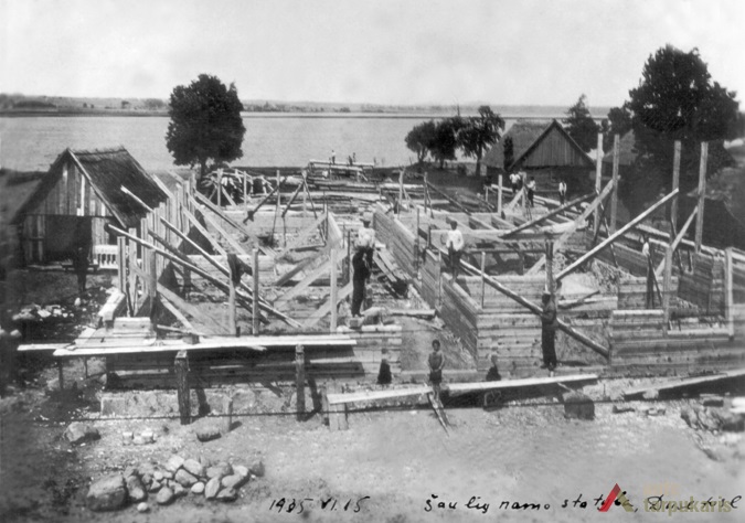 Statybai rąstus vežėsi patys šauliai, nemažai jiems talkindavo ir visuomenė. „Inteligentai kiekvienas aukodavo po gana žymią pinigų sumą, o ūkininkai prisidėdavo darbu, važiuodami į talkas statybinės medžiagos vežti. Buvo net ir tokių atsitikimų, kad apylinkės ūkininkai, niekieno neraginami ir neprašomi, į talką važiuodavo ir visą dieną uoliai dirbdavo.“[6] Namų statybai vadovavo pats šaulių būrio vadas P. Kuzmickas, kuris „kreipėsi į miškininkus prašydamas, kad šaulių namų sienoms parinktų smalingas ir pilnai subrendusias pušis, nes pastatas turės būti tvirtas ir ilgalaikis.“[7] Šaulių namų planą nemokamai parengė inžinierius Antanas Bieliūnas, kuris už tai buvo įrašytas į būrio rėmėjų gretas. „Kasdien prie šaulių namų triūsė būriai žmonių ir todėl nenuostabu, kad po dviejų darbo metų išaugo dideli ir gražūs šaulių namai.“[8] 1937 m. rugsėjo 26 d. Dusetų šaulių namai buvo galutinai baigti ir iškilmingai atidaryti. Tuo metu Lietuvoje jau buvo atidaryta apie 60 šaulių namų.