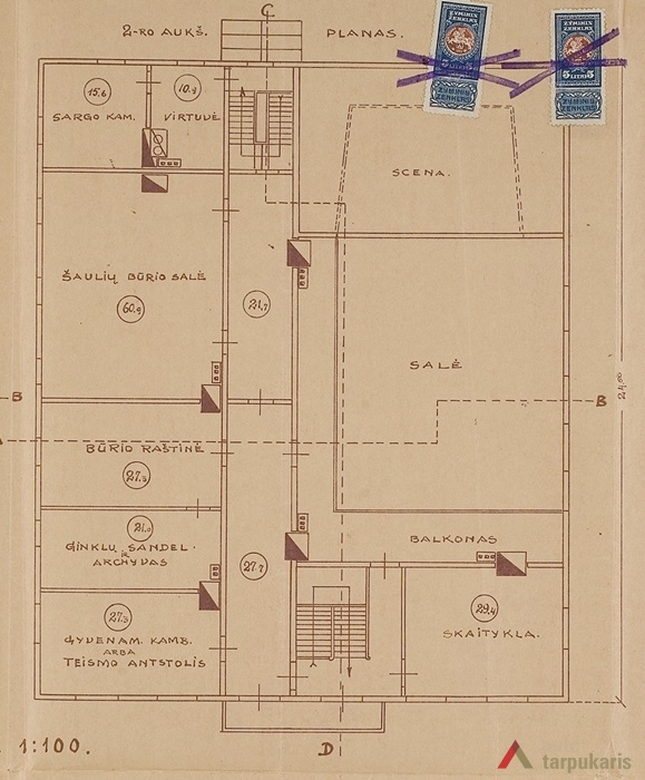 Šaulių namuose be būrio būstinės dar veikė valstybinė biblioteka, buvo įsikūręs apylinkės teismas ir teismo antstolis. Pats pastatas gana erdvus (26 metrų ilgio ir 18,5 metrų pločio), puikiai įrengtas ir apsaugotas nuo neigiamo aplinkos poveikio „Iš oro apmušti tolium ir lentomis. Teismo patalpos, koridorius ir viešajai bibliotekai skirtas kambarys tinkuojami ir dažomi. Namai iš oro pagruntuoti, langai ir durys baltai dažyti.“[9] Apie tuometinį šaulių namų interjerą nėra išlikę daug duomenų – žinoma tik tiek, kad pastate buvo salė su 500 sėdimų vietų, dar tiek pat stovimų vietų antro aukšto šoninėse galerijose, didelė scena, orkestrui patalpa ir kitos šaulių būriui reikalingos patalpos. Netrūko tautinių simbolių ir pačiame pastato interjere, reprezentacinėse patalpose, kuriuose vykdavo svarbūs miestelio renginiai – čia kabėjo vietinių menininkių padovanoti prezidento Antano Smetonos ir Vytauto Didžiojo atvaizdai.