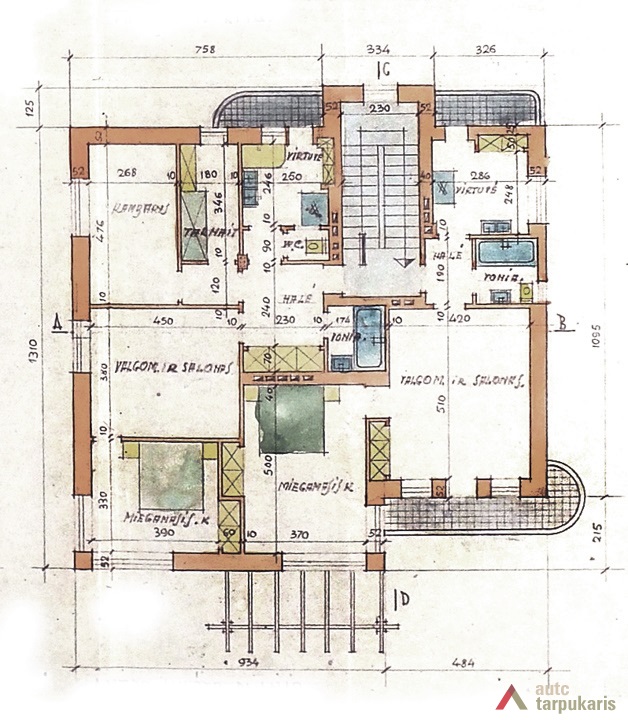 Nors mažai tikėtina, jog pulkininko namas buvo nuomojamas poilsiautojams, tačiau sprendžiant iš patalpų išdėstymo – jame galėjo gyventi net trys šeimos. Pirmame aukšte (šeimininkų erdvė) įrengtas valgomasis, salionas, virtuvė, tarnautės kambarys, darbo kabinetas, miegamasis, rūbinė ir vonios kambarys, antrame aukšte (svečių dalis) – dvi virtuvės, du vonios kambariai, du miegamieji, du valgomieji su salionais bei kambarys.