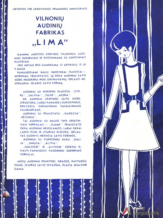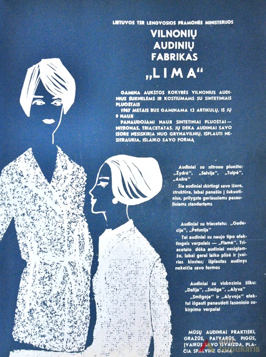 Tekstilės fabrikas „Lima“ [„Lietuvos manufaktūra“] įsteigtas 1937 m. ir „audė kostiuminius audinius iš šukuotinių ir kočiotinių verpalų, įvežamų dažniausiai iš D. Britanijos“[1]. Pokario metais Rašytojų sąjungos ir meno reikalų valdybos savaitraštyje „Literatūra ir menas“ publikuotame tekste propagandiniu „socialistinio realizmo“ stiliumi sukurta intriguojanti apysaka apie „Limos“ fabriką. Be kita ko, čia pasakojama ir apie fabriko architektūrinę aplinką: „Lima“ ne viena stovėjo tarp kalno ir Neries, bet su dviem kaimynėmis. Šalia šio fabrikėlio, kažkada apsukrių biznierių grupelė surentė kitą fabrikėlį ir pavadino „Vilnoniai audiniai“. O po kurio laiko atsirado dar pora su storomis kišenėmis ir pastatė trečiąjį. Šitos trys gamykliukės buvo taip arti viena kitos, kad jų sienos lietėsi, o nuo vieno stogo vandens lašai krito ant gretimojo. Nežinantis galėjo pamanyti, kad visa ta raudonų plytų namų krūva priklauso vienam fabriko kompleksui“[2].