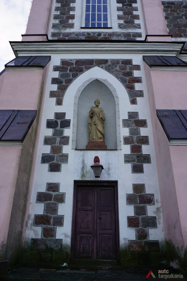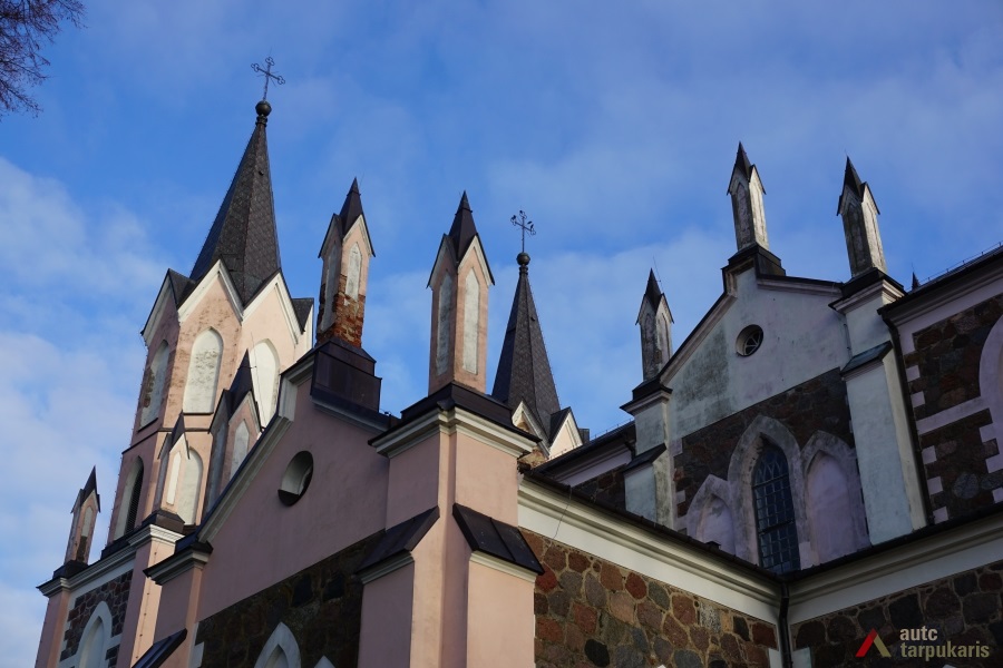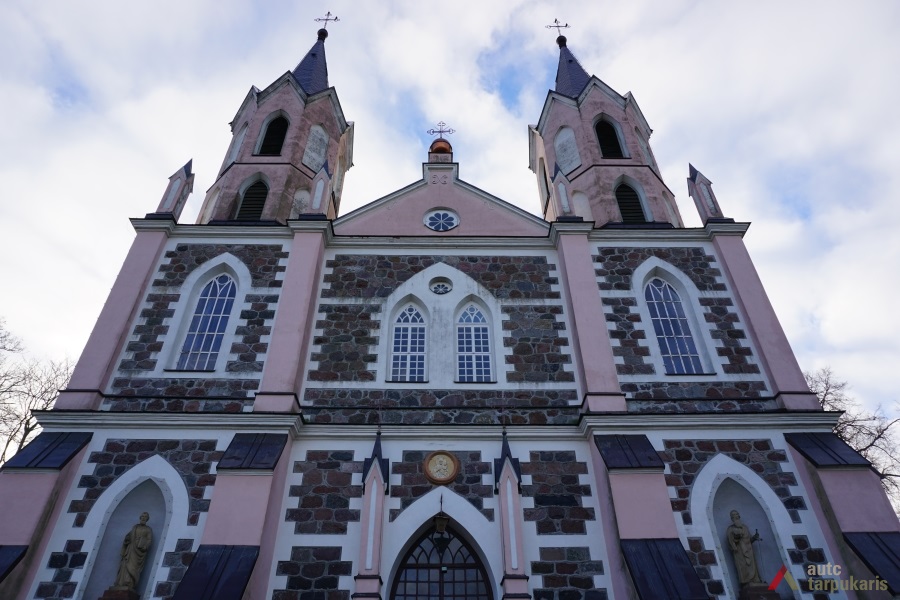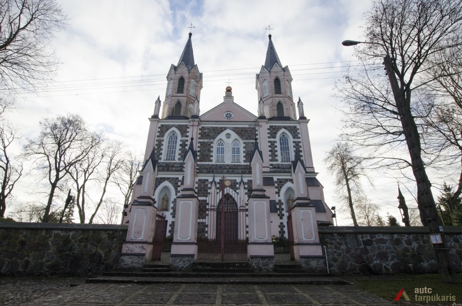 Neogotikinė bažnyčia lotyniško kryžiaus plano, bazilikinė su transeptu ir apside bei dviem, keturių tarpsnių bokštais (bokštų aukštis 35 m.). Kairiajame bokšte įrengta varpinė. Bokštų apatinio tarpsnio smailiaarkėse nišose įstatytos skulptūros, antrojo tarpsnio kraštus rėmina kampiniai piliastrai pereinantys į pinaklius. Bokštų mūrinė dalis užsibaigia trikampiais frontonėliais, išdėstytais po vieną visose keturiose pusėse, ir smailiais šalmais. Tarp bokštų – lėkštas trikampis frontonas papuoštas maža rozete ir rutuliu su kryžiumi. Bažnyčios fasadus skaido įprastas neogotikinių bažnyčių elementas – laiptuoti kontraforsai, smailiaarkiai langai. Pagrindinio fasado centre –smailiaarkis portalas įrėmintas šoninių kontraforsų.