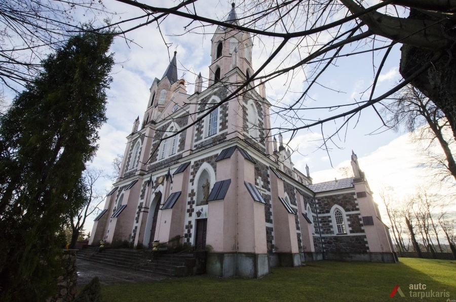 Dabartinė, iš lauko akmenų ir plytų, dalinai tinkuota bažnyčia sumūryta 1881 m. vaizdingoje vietoje, ant ežero kranto. Bažnyčios statyba rūpinosi ir darbams vadovavo kunigas Kazimieras Jonkaitis, tačiau mirė nespėjus bažnyčios visiškai įrengti. Bažnyčios sienoje yra įmūryta kun. K. Jonkaičio paminklinė lenta. Šventovės įrengimą užbaigė jo įpėdinis – kun. Simonas Narkevičius, kuris trinavėje bažnyčios erdvėje pastatė penkis altorius, sakyklą ir vargonus, šventorių aptvėrė mūrine tvora. Naujoji bažnyčia pašventinta 1887 m. jai suteiktas Švč. Mergelės Marijos ėmimo dangun vardas. Bažnyčiai vadovavęs kun. Motiejus Simonaitis altorių pakeitė ąžuoliniu, neogotikos stiliaus, papuošė iš užsienio parvežtomis skulptūromis.[1]