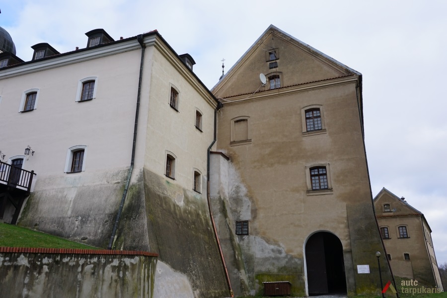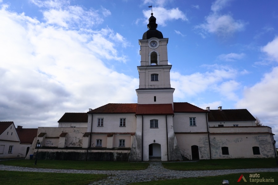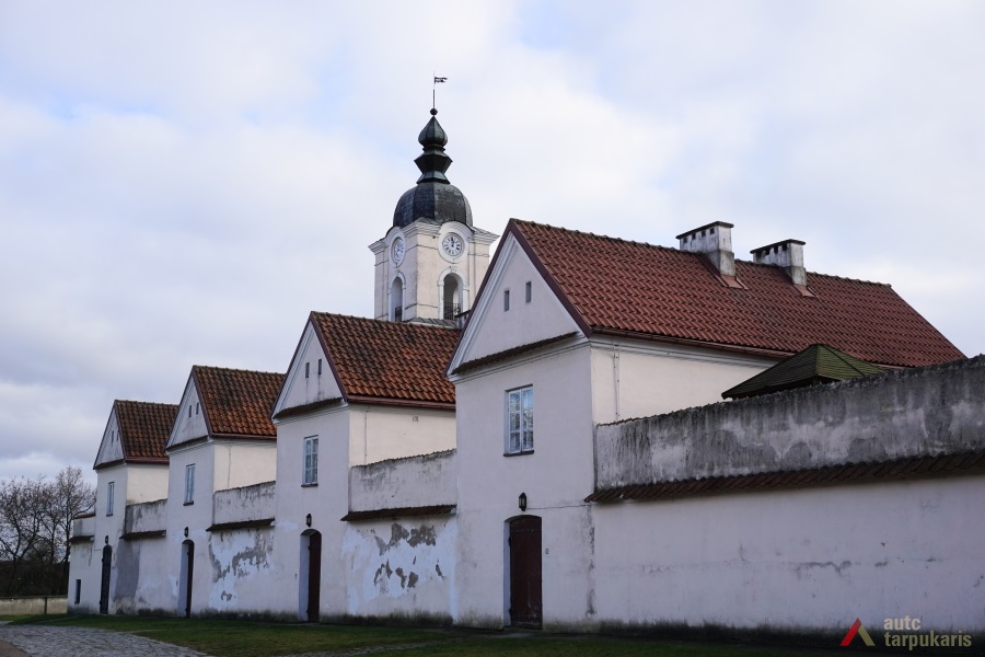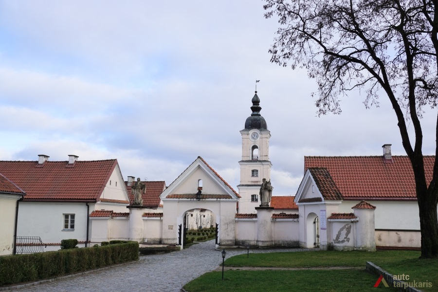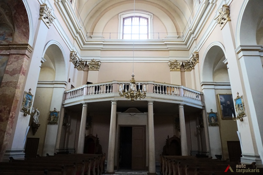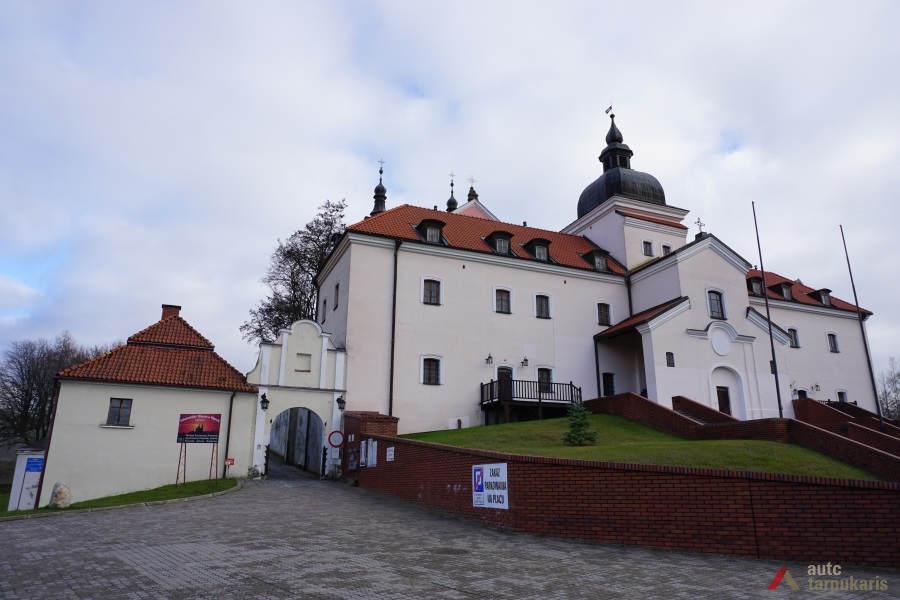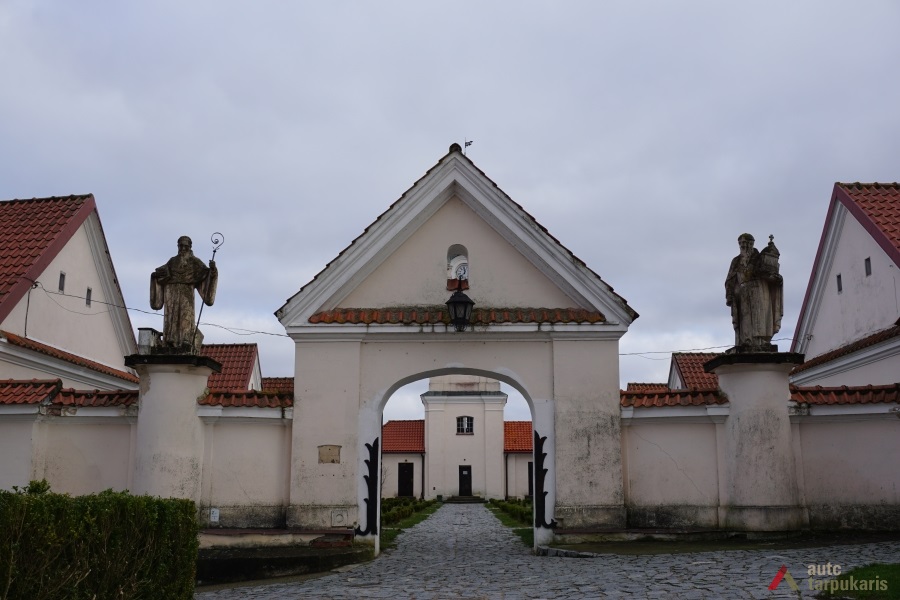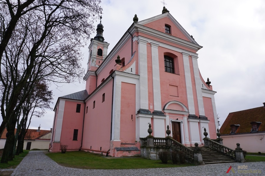 Pirmoji bažnyčia, statyta dar XVII a. antroje pusėje, buvo medinė, dabartinė dvibokštė vėlyvojo baroko bažnyčia iškilo 1745 m. Bazilikos tipo trinavės bažnyčios rytinis ir vakarinis fasadai puošti piliastrais ir trikampiais frontonais. Per Antrąjį Pasaulinį karą buvo nugriauti bokštai rekonstruoti šeštajame dešimtmetyje. Dabar atstatytas visas vienuolyno ansamblis, čia įkuriant poilsio namus.