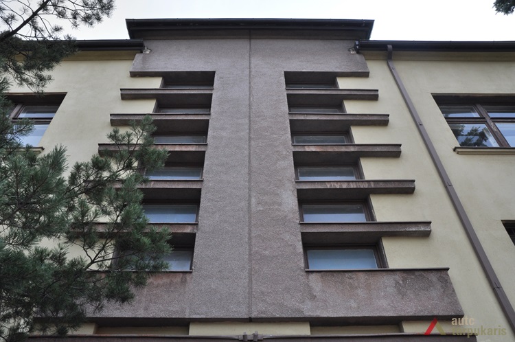 Dviejų vienas prie kito simetriškai prisišliejusių namų kompozicija remiasi veidrodine simetrija. Tik galiniame fasade matome O. Balsienei priklausiusioje dalyje suprojektuotus lenktus mūrinius laiptelius į antrą aukštą. Ši žaisminga detalė – retas Kauno tarpukario architektūros elementas. Pagrindinis fasadas reprezentatyvus. Masyvūs, lenkti balkonai, tamsiu tinku išskirtas cokolinis aukštas, laiptinės dalis bei nuo gatvės lygio pakeltas įėjimas namui suteikia prabangos įspūdį.