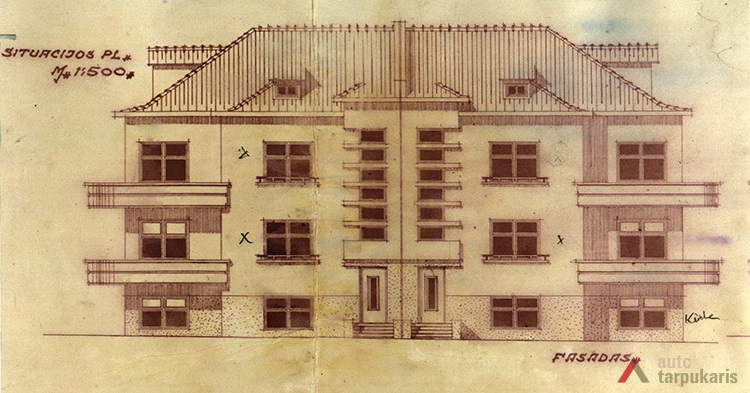 Nepriklausomybės pabaigoje iškilęs objektas – nestandartinis. Nors vizualiai tai vienas namas, tačiau statinys iškilo kaip dviem skirtingiems savininkams priklausantys pastatai[1]. Pirmąjį prašymą statyti mūrinį dviejų aukštų namą sklype Lidija Vaišvilienė pateikė 1936 vasario 26 d. Projektą tuomet rengė statybos inžinierius Jokūbas Peras[2]. Visgi sumanymas nebuvo įgyvendintas. 1939 m. Lidija Vaišvilienė ir Olimpija Balsienė statybos inžinieriui Leibai Zimanui pavedė parengti kitą projektą[3].