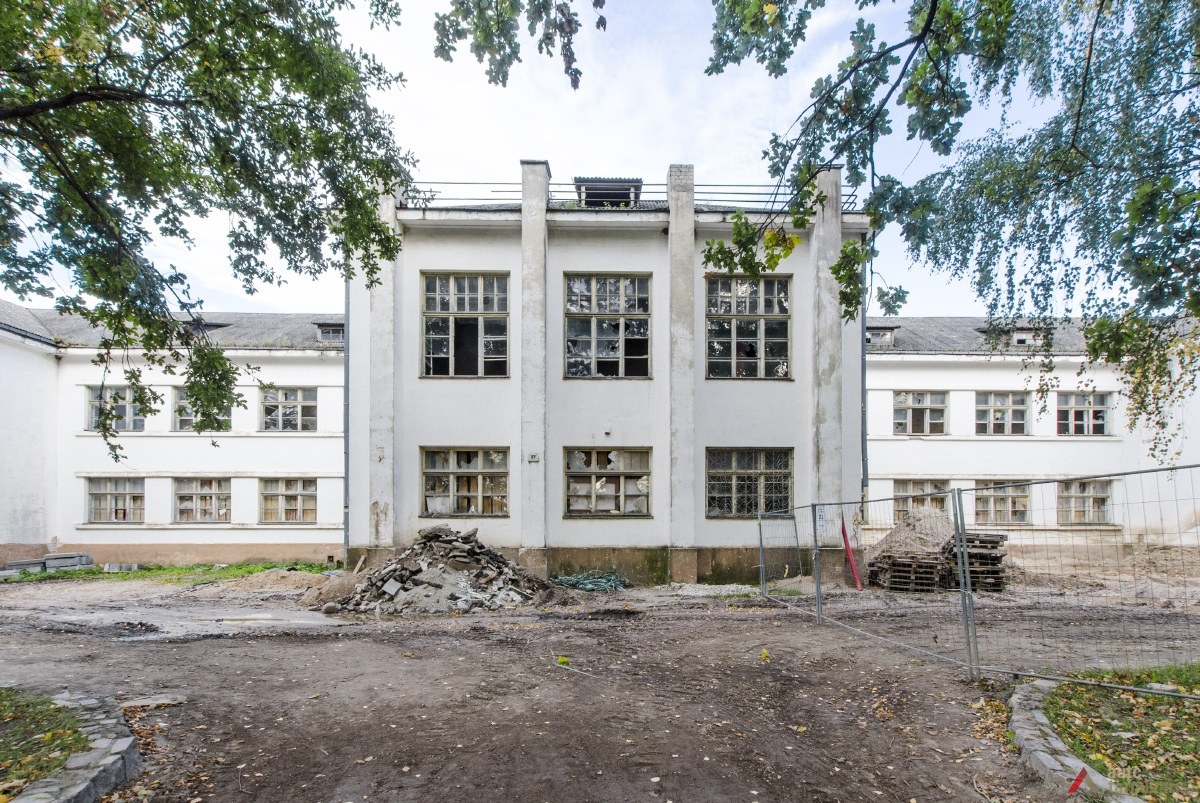 P. Armino pradžios mokyklos sienos iškilo rugpjūčio pabaigoje. Maždaug tuo metu pradėjo tverti ir tvorą. Kai rugsėjo pabaigoje buvo uždengtas stogas, tai po to dar kelis mėnesius užtruko darbai rūmų viduje. Tiesa, ir juos stabdė pinigų trūkumas – rugsėjo 28 d. susirinkusi miesto taryba nusprendė imti paskolą rūmų statybai; tuo tikslu iš valstybės taupomųjų kasų buvo gauta 120 000 litų paskola. Lapkričio mėnesį kieme išgręžė 64 m gylio artezinį šulinį, kuris kainavo 4000 litų.