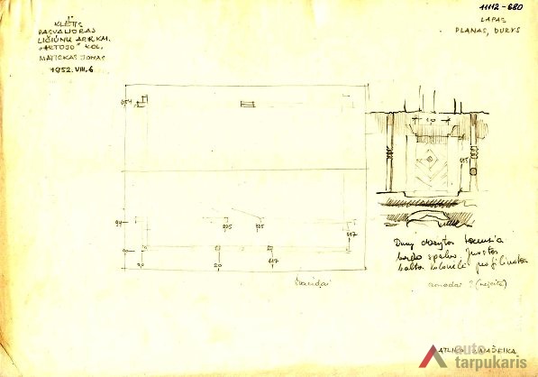 Sodyba 1952 metais vykusios ekspedicijos metu apmatuota Ličiūnų kaime, Pasvalio rajone. Šio kaimo teritorija pagal Lietuvos etninių regionų schemą patenka į Aukštaitijos regioną. Sodybos pastatai išsidėstę stačiakampio formos sklype jo perimetru, išskyrus gyvenamąjį namą, kuris stovi arčiau sklypo centro, galu į kaimo kelią. Pastatų orientavimas gyvenamojo namo ir pasaulio šalių atžvilgiu taisyklingas. Gyvenamasis namas stovi vakarinėje sklypo dalyje, jo pagrindinis fasadas orientuotas į pietus – į svirną priešais namą. Ūkinis kiemas driekiasi už gyvenamojo namo į šiaurę, aplink jį išsidėstę visi kiti sodybos pastatai – kluonas, tvartas ir pirtis. Gyvenamasis namas stačiakampio plano, statytas iš tašytų, į kertes su išsikišusiais galais suleistų sienojų. Namo planas pasižymi dvipuse simetrija, turi prieangį „gonkeles“ iš abiejų pusių. Svirnas vienos patalpos, statytas su galerija, durys dviejų sluoksnių lentų, išorinis sukaltas rombo ornamentu. Galerijos kolonėlės dekoruotos jas aptašant.