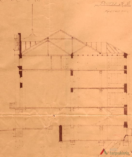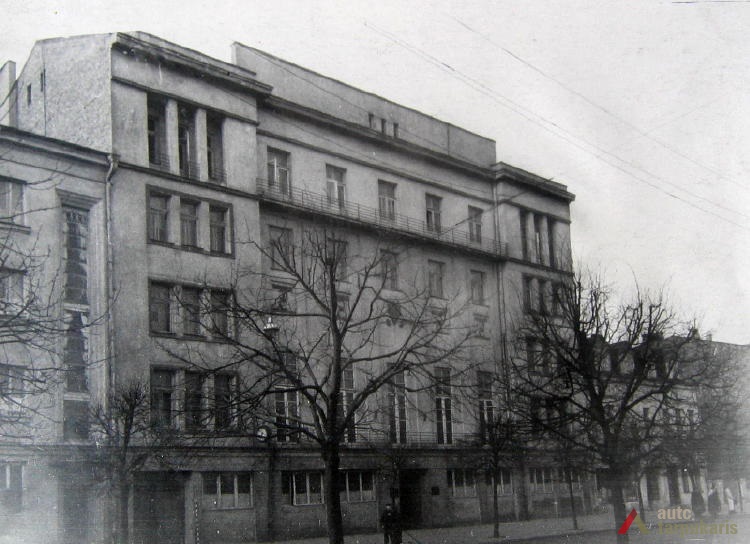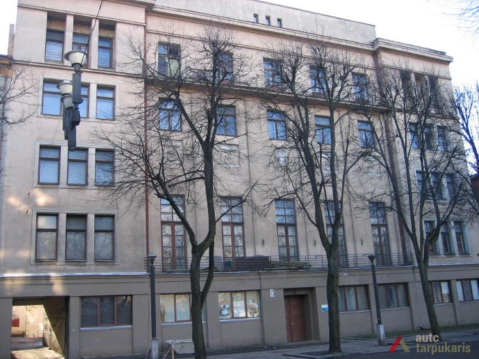 1926 m. kovo 16 d. Statybos komisijos nutarimu Nr. 4 Ateitininkų Sendraugių sąjungos centro valdybai leista statyti gyvenamąjį mūrinį keturių aukštų namą studentų bendrabučiui. 1927 m. rugpjūčio 9 d., vykstant statybai, pateiktas prašymas leisti paaukštinti namą iki penkių aukštų, „kad duoti galimybės didesniam studentų skaičiui gyventi“[1]. Leidimas buvo gautas, bet „su sąlyga, kad ir penktas aukštas būtų aprūpintas liftu“[2].