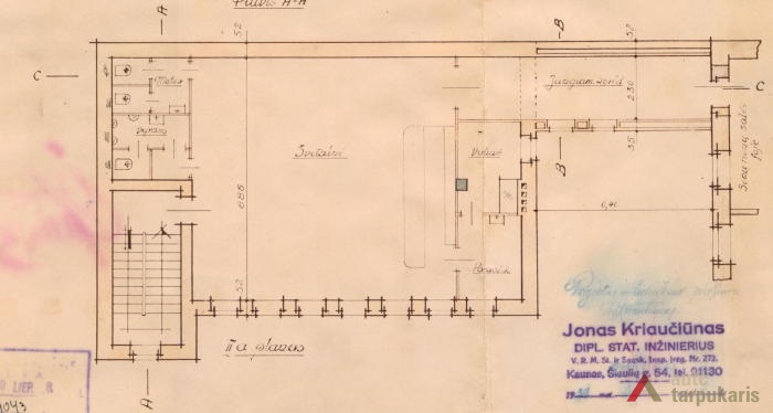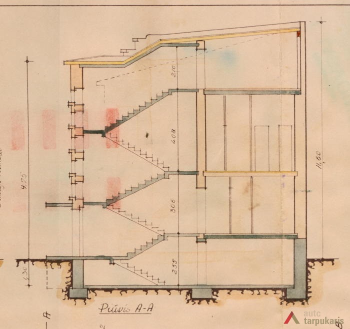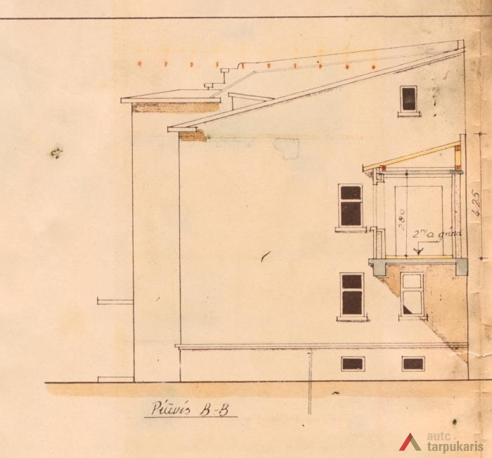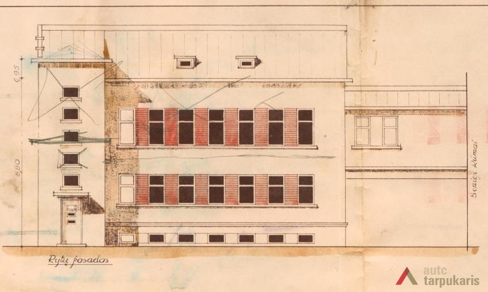 1939 m. liepos 8 d. buvo pateiktas prašymas statyti dviejų aukštų mūrinį gyvenamąjį namą su rūsiu Ateitininkų sąjungos sklypo kieme. Projektą parengė statybos inžinierius Jonas Kriaučiūnas. Tačiau 1939 m. spalio 23 d. Kauno miesto savivaldybės Statybos skyrių pasiekė raštas, kad „dėl ekonominių sunkumų, susidariusių sąryšy su paskutiniaisiais Europos įvykiais, buvome priversti statybos darbus laikinai šiemet nutraukti, pastačius tik vieną aukštą su rūsiais. Šiuo metu norime uždengti stogą skarda, tačiau dabar iš viso negalima gauti juodos skardos. Maloniai prašome Statybos Komisiją leisti laikinai stogą dengti cinkuota skarda“[1]. Namas iki šių dienų liko stovėti neužbaigtas. Sprendžiant iš projekto, fasadai turėjo būti tinkuojami, išryškinamos horizontalios langų juostos. Statinio architektūra artima santūriam kaunietiškam funkcionalizmui.
