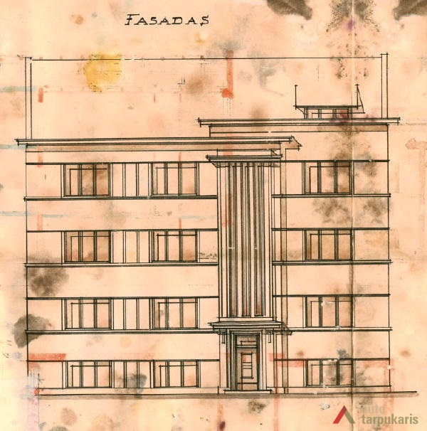 Keturių aukštų gyvenamąjį namą buvusiame Laisvės al. 18 (dab. Laisvės al. 32) sklype Kazimieras Pocius pastatė 1928 m.[1]. Iš savininkų Antano Ivanauskio ir Vlado Juškevičiaus 1938 m. gegužės 22 d. skundo Kauno miesto burmistrui sužinome, kad čia būta viešbučio „Roma“: „Turime garbės prašyti Tamstos parėdymo uždrausti viešbučiui „Roma“ Kaune, Laisvės al. 18 rengti šokius esančioje II aukšte viešbučio valgykloje, nes grindys neišlaikius tokio apkrovimo gali įlūžti“[2]. Sklypo kiemo gilumoje taip pat būta „seno, apleisto ir supuvusio medinio trobesio, kuriame talpinama karo invalidų dirbtuvė (siuvykla)“[3]. Nors pastarajį trobesį dar 1932 m. vasario mėn. siūlyta griauti, tačiau kelis kartus iki 1940 m. gegužės 1 d. buvo gautas leidimas griovimą atidėti[4] 1938 m. birželio 18 d. buvo pateiktas prašymas jo vietoje statyti mūrinį „3 1/5 aukštų su salka, čerpių stogo“ namą. Obektą planuota statyti kieme. Čia turėjo būti „8 butai su separatka (lenk. separatka – „atskiras kambarys vienam asmeniui, vienutė“ – red.) ir 21 kambarys“[5]. Architektūrinis sprendimas artimas kaunietiškajai funkcionalizmo (modernizmo) tradicijai.