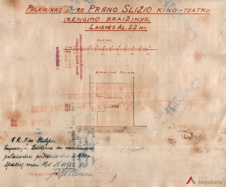 Gydytojui, atsargos pulkininkui Pranui Šližiui leidimas „statyti kino teatrui trobesį ir gyvenamus dviejų aukštų namus“ [1] vietoje ten buvusio medinio namo su Stanislovo Imšos parduotuvėmis[2] išduotas 1930 m. kovo 17 d. Kiek vėliau, 1930 m. birželio 13 d. buvo paduotas prašymas „užstatyti trečiąjį aukštą virš statomojo dviejų aukštų mūro“ (arch. J. Salenekas)[3]. Leidimas buvo duotas. Rudeniop statyba jau buvo baigta. Spalio 16 d. Kauno miesto Statybos komisija leidžia įrengti kino teatrą[4]. Visgi galutinai kino teatras atidaromas 1931 m. sausio 7 d. ir pademonstruojama „garsinė filma „Šitą tango tau dovanosiu“[5]. Teatro patalpas sudarė salė, fojė ir balkonas, jis turėjo 400 vietų (1938 m.).
