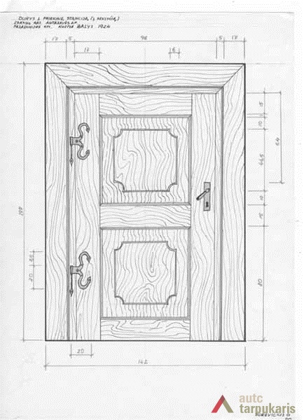 Gyvenamojo namo vidinės durys (į seklyčią). Vienvėrės. Įsprūdinės konstrukcijos: lentelės įstatytos į rėmą, kuris dalija duris į du laukus su dekoratyviais kvadratais nusklembtais kampais. Įsprūdinės durys ypač paplito XX a. pr. Kalvio nukalti šių durų vyriai itin puošnūs.