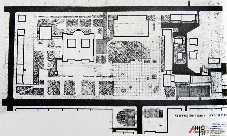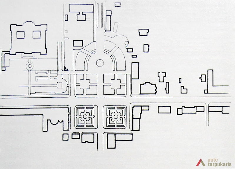 Aikštės kompozicija yra unikali tiek Kauno, tiek Lietuvos mastu. Šio urbanistinio audinio horizontalias plokštumas galima skaidyti į keturias dalis. Pagrindinė, tuomet reprezentacinė, dalis (90x110 m)[2], apribota PSPI ir MSPI, Vytauto Didžiojo muziejaus šoninio vakarinio fasado bei lapuočių medžių eilės. Vakaruose prie šios dalies šliejasi Karo muziejaus sodelis, kuris yra tarsi atvira aikštės tąsa iki pat Maironio gatvės. Čia pastebimas konceptualus erdvinis planavimas: dvi pagrindinės vertikalios dominanės – kariliono bokštas ir PSPI aukštutinė dalis – erdvėje suformuoja reprezentazinės bei pėsčiųjų zonos ribas. Taip pat PSPI pastatas tarsi uždaro Karo muziejaus sodelio perspektyvą.