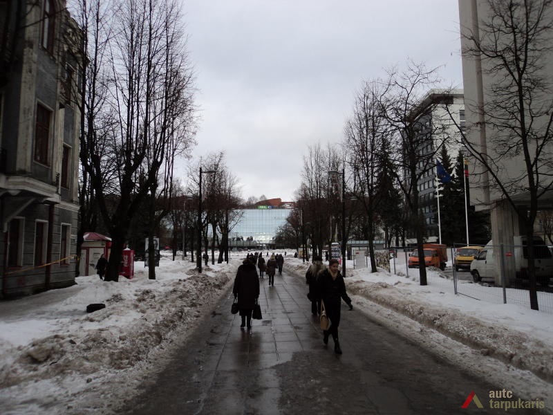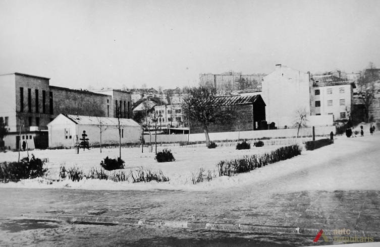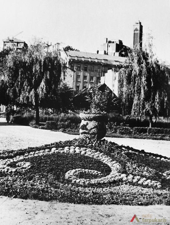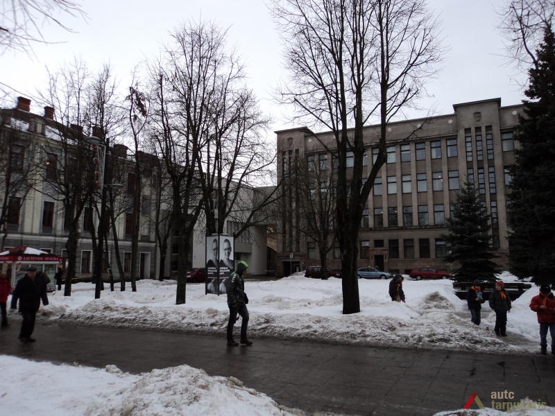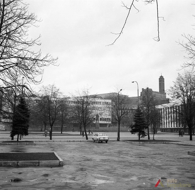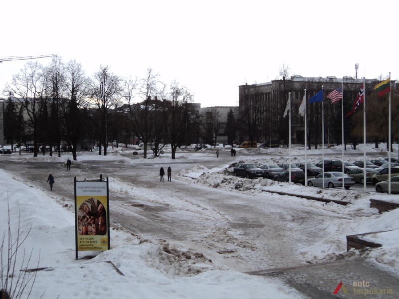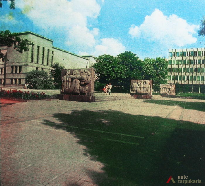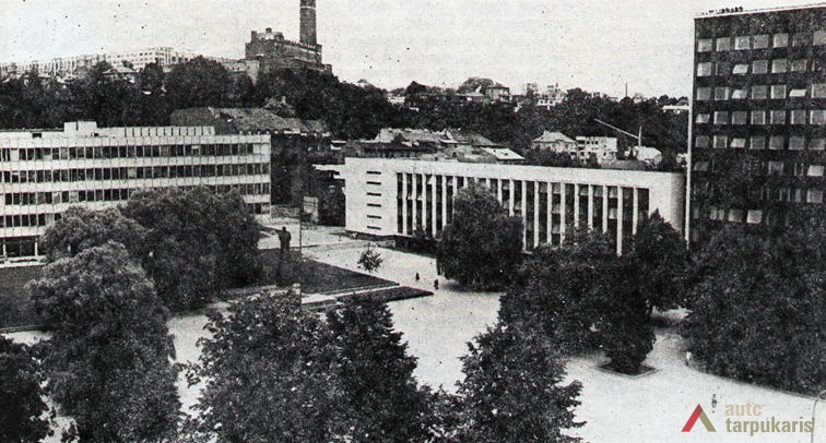 Kitos dvi plokštumos išdėstytos pietinėje S. Daukanto g. pusėje. Viena ties KTU centriniais rūmais buvo skirta automobiliams statyti, o kita, S. Daukanto g. rytuose, pastačius Politinio švietimo namus (dabartinius VDU centrinius rūmus) pavirto skveru ir savotiška „avanaikšte“[3], po kuria ketinta įrengti 100 vietų požeminę automobilių aikštelę. S. Daukanto gatvės perspektyvinę liniją šiaurėje užsklendžia MSPI rūmai – asketiškų formų, minimalizmo principais suprojektuotas statinys. Jo ryškūs gabaritai kiek užstoja Žaliakalnio šlaitus, tačiau jis savo ruožtu yra tam tikra ašis ir visos aikštės akcentas. Vis dėlto jungtis su Žaliakalnio rajonu nenutraukta. Perspektyvinę liniją į kalvos siluetą atspindėjo ir tuomet aikštėje stovėjusi Lenino skulptūra, nežymiai patraukta į rytus nuo šiaurės – pietų kompozicinės ašies – menamos S. Daukanto gatvės tąsos. Žvelgiant į tuometį aikštės akcentą – Lenino skulptūrą, jos fone atsiveria aukštyn per V. Putvinskio gatvės pastatų siluetus kylanti ir ties Prisikėlimo bažnyčios bokštu užsibaigianti perspektyvinė linija.