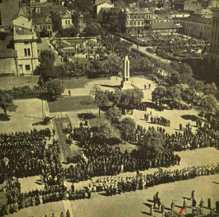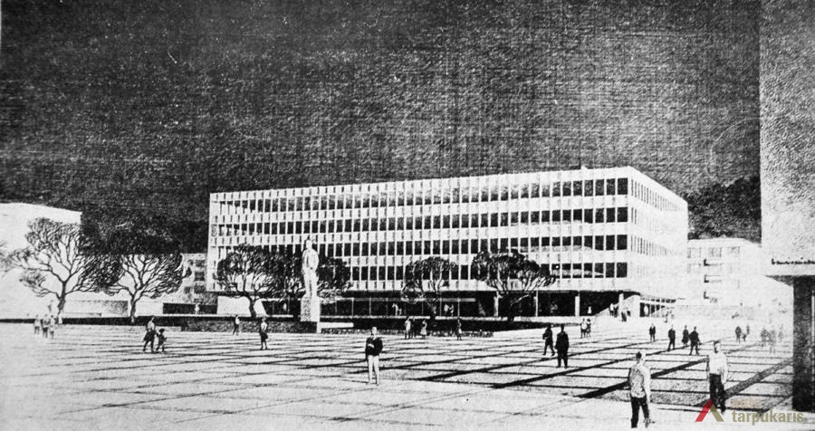 Vienybės aikštės užuomazgos radosi XIX a. viduryje, kai buvo sudarytas Kauno miesto planas. Carinės Rusijos laikotarpiu, o vėliau ir tarpukariu čia daugiausia buvo statomi administracinės ir komercinės paskirties objektai[1]. Sovietmečiu aikštės (tuomet J. Janonio) vaizdas pasikeitė, nes buvo intensyviai įgyvendinamas 1960 m. architektų V. Stausko ir S. Bartusevičiaus parengtas projektas. Čia telkėsi administracinės, kultūrinės ir švietimo paskirties pastatai. Pagrindiniai statybos darbai vyko nuo septinto dešimtmečio pradžios iki 1975 m., kai iškilo Pramoninės statybos projektavimo instituto rūmai (1965; toliau – PSPI), Politinio švietimo namai (1974; dab. VDU centriniai rūmai) ir Miestų statybos projektavimo instituto rūmai (1975; toliau – MSPI).