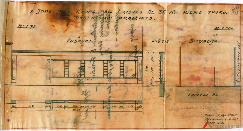 1930 m. rašoma jau apie du mūrinius namus[5], o 1932 sklypas priklauso Ipams[6]. 1935 m. parengtas mūrinio vieno aukšto sandėlio su garažu projektas. Tais pačiais metais leista pastatyti ir betoninę tvorą[7], kuri – tai matyti iš projekto – planuota kaip architektūriškai išraiškingas miesto elementas. Abiejų projektų autorius – technikas J. Gastila[8].