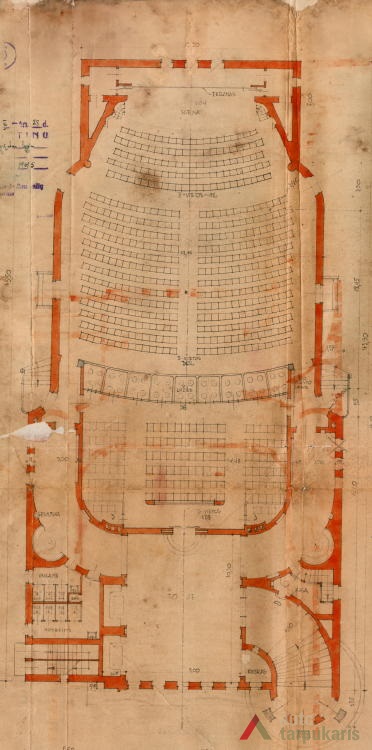 1937 m. situacijos planas rodo, kad sklype būta dviejų mūrinių ir vieno medinio namo bei keletas medinių sandėliukų[9]. Mūrinis sandėlis su garažu veikiausiai nebuvo pastatytas, statybai numatytoje vietoje vis dar pažymėti griautini mediniai sandėliai. 1938 m. sklypą įsigijo Antanas ir Petras Steikūnai[10], kurie 1938 m. gruodžio 29 d. Kauno miesto statybos komisijai pateikė prašymą statyti kino teatrą[11]. Numatoma statybos kaina 200 000 Lt. Leidimas 687 vietų kino teatrui statyti buvo išduotas 1939 m. vasario 3 d.[12], o 1940 m. balandžio 13 d. jis jau buvo pastatytas[13].