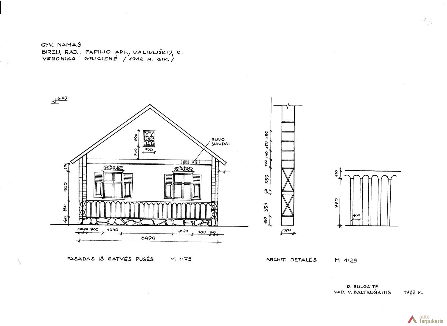 Tipiškas aukštaitiškas dviejų galų gyvenamasis namas su erdvia priemene centre ir galinėmis patalpomis – gryčia ir seklyčia. Priemenėje atskirta „maltuvė“ – patalpa, kurioje stovėjo rankinės girnos. Iš „maltuvės“ pakeltas tradicinis Šiaurės Lietuvai kaminas – virenė, kur buvo gaminamas alus, verdamas valgis, rūkoma mėsa ir kt. Namas suręstas ant akmeninių pamatų. Apatinė gryčios sienojų dalis iki langų puošta vertikaliai apkaltomis lentomis, kurių viršuje išpjautos dekoratyvios arkutės. Namo kerčių puošyba taip pat būdinga Aukštaitijai. Kerčios apkaltos lentomis, apatinėje dalyje dekoruotomis raižytu geometriniu piešiniu. Sienojų ir kerčių apkalimai saugojo nuo aplinkos poveikio. Laukujės namo durys dvivėrės, įsprūdinės, puoštos, su įstiklinta viršutine dalimi. Virš durų stogelis. Namo langai keturių dalių. Gryčios dalies langai turi puošnias langines ir augalinio ornamento antlangius. Seklyčios langai ir langinės santūresnių formų. Galinis namo fasadas ypač puošnus, skliauto langelis trijų dalių, grakščiai papuoštas. Namo stogas pusvalminis, dengtas šiaudais.