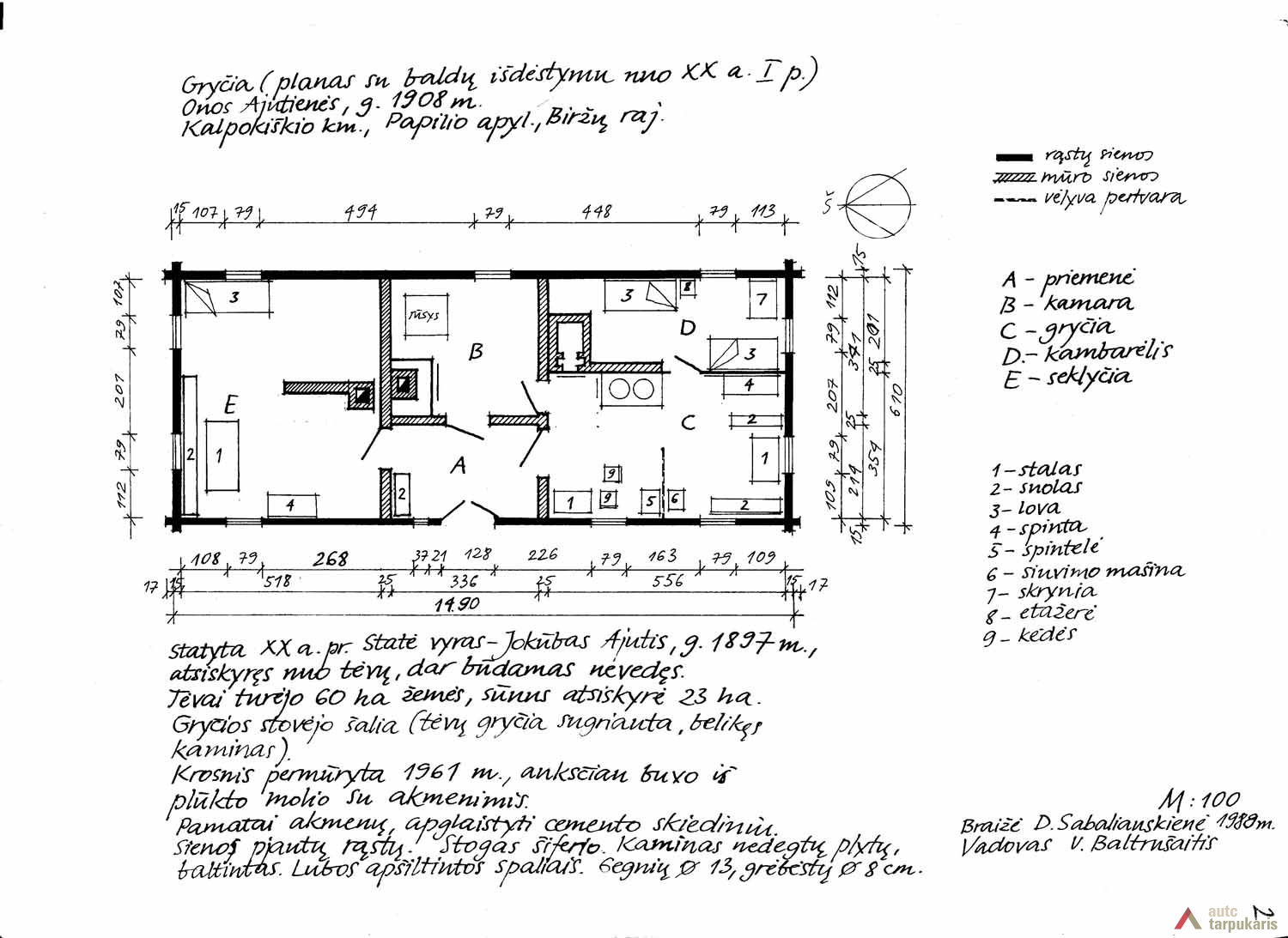 Namą XX a. I pusėje pasistatė Jokūbas Ajutis, g. 1897 m., turėjęs 23 ha žemės. 1988 m. Papilio ekspedicijos metu čia dar gyveno jo žmona Ona Ajutienė.