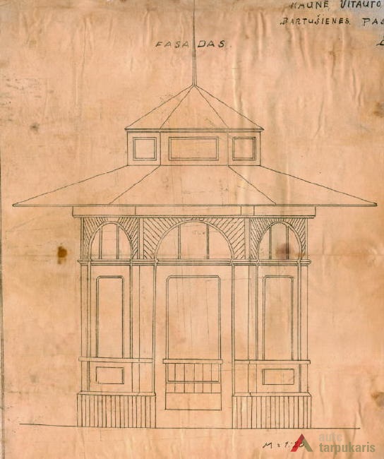 Pirmojo nepriklausomybės dešimtmečio pabaigoje, atsigaunant valstybės ekonomikai, savivaldybė skyrė vis daugiau dėmesio miesto smulkiajai architektūrai. Svarbesnėse miesto vietose anksčiau įrengti lentiniai laikinieji prekybos taškai, tuo metu vadinti „balaganais“, „šopelėmis“, „būdomis“, tolydžio buvo nukeliami (antai 1928 09 06 miesto Statybos skyriaus „Apžiūrėjimo protokole“ rašoma: „Balaganas Mickevičiaus ir Kęstučio gatvių kertėj 1,80 m. ilgumo ir 0,70 platumo pastatytas be jokio leidimo iš Miesto Valdybos. Be to, pažymėtina, kad minėto tipo balaganas visai neleistinas statyti. Pareikalauti minėta balaganą nugriauti ir už nesilaikymą bendros tvarkos, t. y. sauvaliavimą, nubausti"[1]. Netrukus mieste pasirodė ir itin modernių lauko įrenginių: „Laisvės alėjoje Kauno miesto savivaldybės pastatytų naujų betoninių reklamoms stulpų viršuje bus įtaisyti specialūs stogeliai šviesos reklamoms“[2].