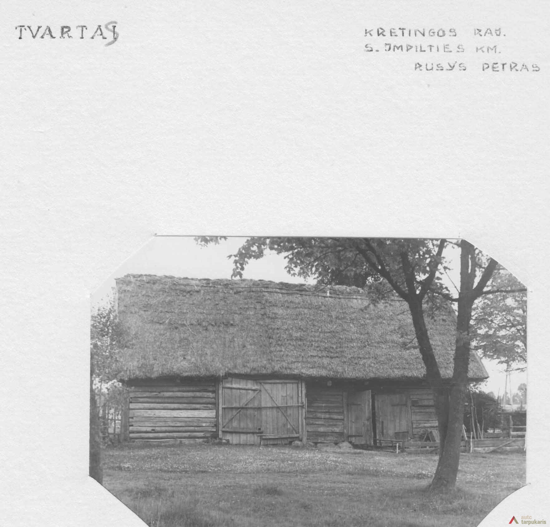 Tvartas – būtinas sodybos pastatas, kuriame laikomi gyvuliai. Pastatas stačiakampio plano, suręstas iš netašytų rąstų. Stogas gegninės konstrukcijos, dvišlaitis, dengtas šiaudais. Pastogės plačios, tinkamos sandėliuoti rakandus. Tvarte įrengtos dvejos plačios viengubos dvivėrės konstrukcijos durys, kad būtų patogu išvežti mėšlą, vedžioti arklius, karves. Jis buvo suręstas atokiau nuo gyvenamojo namo. Šios paskirties pastatus stengtasi statyti pavėjinėje arba šiaurinėje pusėje, žemesnėje vietoje. Priklausė Petrui Rusiui.