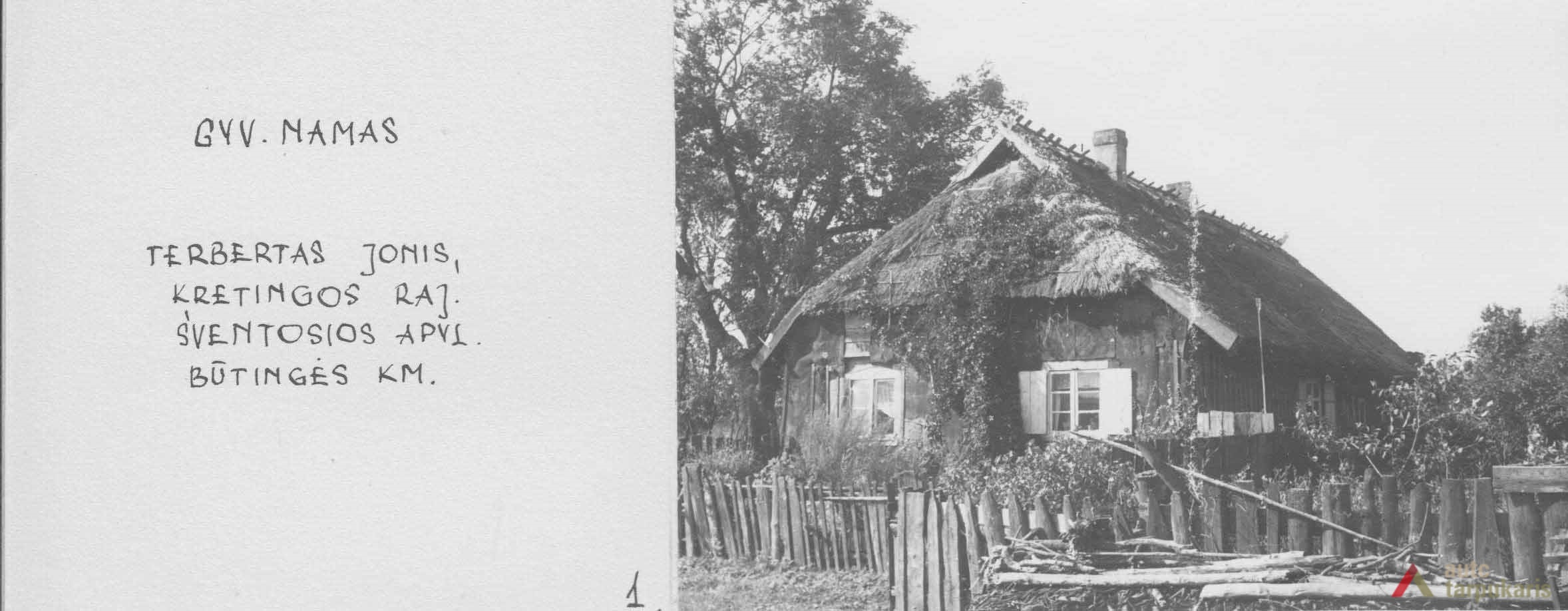Namas (troba) būdingas šiaurės vakarų Lietuvai, Latvijai. Monumentalus. Namo sienos tašytų sienojų. Gyvenamasis namo galas apkaltas stačiomis lentelėmis. Durys dvivėrės, puoštos rombine apkala. Langai šešiarūčiai, su masyviomis baltomis langinėmis. Stogas gegninės konstrukcijos, pusvalminis, su čiukurais, dengtas šiaudais. Stogo kraigas sutvirtintas išilginėmis klotimis ir sukryžiuotais slogčiais. Tradiciškai ties čiukuru šiaudus nuo vėjų saugojo lėkiai. Plačios pastogės. Troba juosiama gėlių darželiais, statinių tvoromis.
