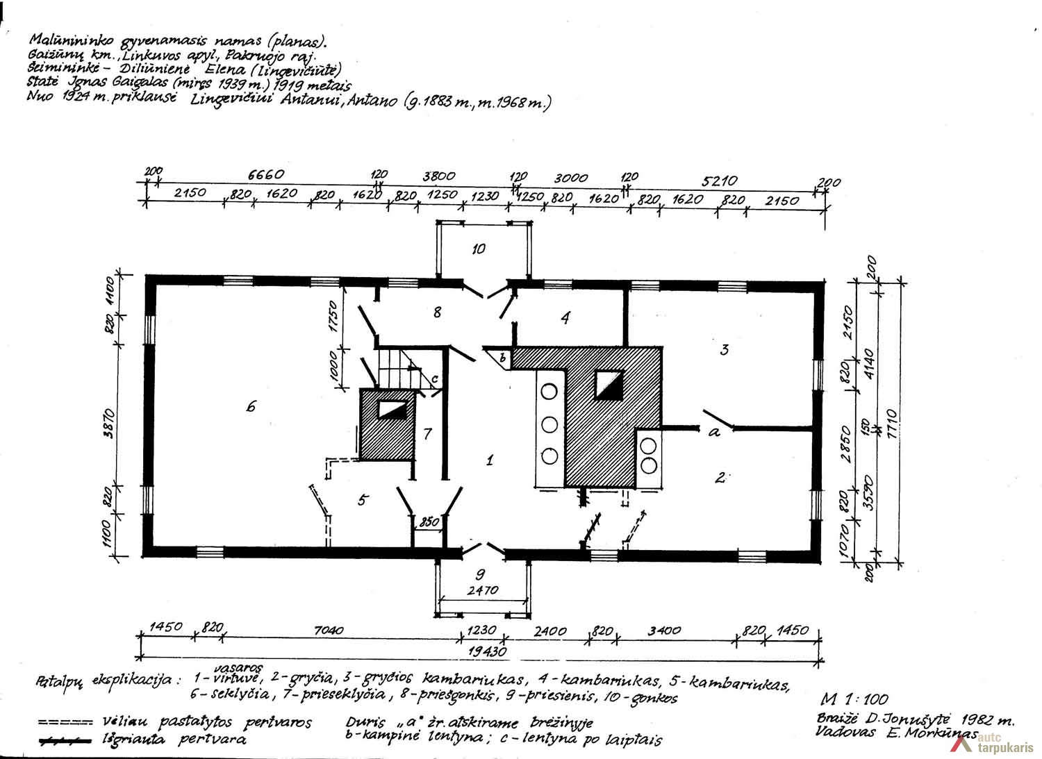 Gyvenamasis namas, statytas 1919 m. malūnininko Igno Gaigalo. Namo ilgis 19,4 m, plotis 7,7 m. Pastato planas būdingas aukštaitiškam būstui (gryčia, priemenė, seklyčia), be to, namas sudalytas į dar daugiau patalpų. Atitverta prieseklyčia, gryčios kambariukas. Centrinėje pastato dalyje, ko gero, vėliau, įrengta vasaros virtuvė. Namas šildytas dviem krosnimis. Gryčios krosnis didesnė, joje buvo ruošiamas valgis. Gryčioje vykdavo kasdienis šeimos gyvenimas. Pastatas turi du įėjimus, paradinis įėjimas su prieangiu („gonkomis“).