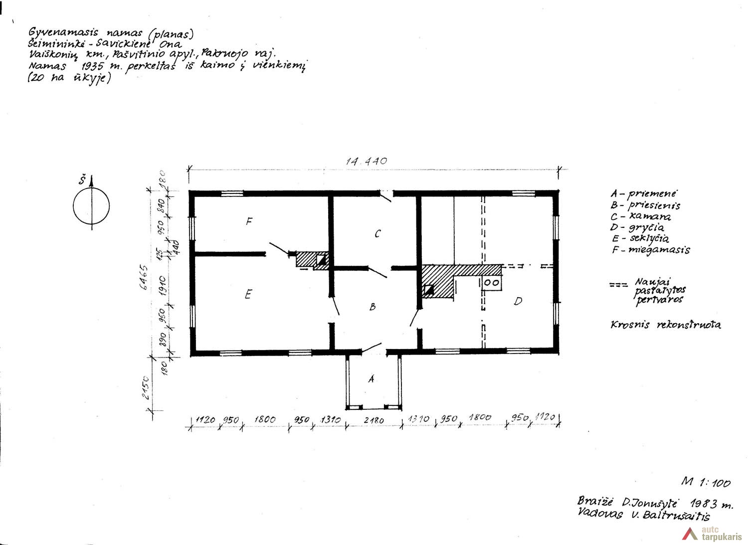 Gyvenamasis namas statytas XX a. pradžioje, o 1935 perkeltas į vienkiemį (20 ha ūkis). Pastato ilgis 14,4 m, plotis 6,4 m. Tai tipiškas aukštaitiškas dviejų galų gyvenamasis namas su priemene (priesieniu) centre bei galinėmis patalpomis – gryčia ir seklyčia. Gryčia erdvi su krosnimi, joje vykdavo kasdienis šeimos gyvenimas, buvo gaminamas valgis, dirbama. Seklyčioje atitvertas miegamasis. Priemenėje atskirta kamara, joje durys į lauką (į „bolgąjį“ kiemą).