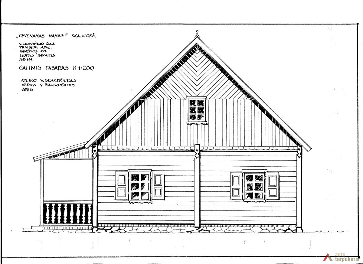 Suvalkietiškas gyvenamasis namas (stuba). Statytas apie 1920–1940 m. pasiturinčio ūkininko Liudo Giraičio, valdžiusio 33 ha žemės, sodyboje. Tradiciškai suvalkietiškas namas ilgas ir siauras, su daug patalpų. Stogas gegninis, dvišlaitis, su nedideliais užlaidais. Stogo kraigas buvo dengtas puošniomis profiliuotomis figūrinėmis čerpėmis (kraiginėmis). Namo skliautas suskaidytas į tris plokštumas, apkaltas vertikliai ir įžambiai lentelėmis, tai suteikia skliautui puošnumo. Įžambiai suklatos lentelės sudaro eglutės piešinį. Skliauto puošybą papildo langelis su dekoratyviu polangiu. Ties pagrindiniu namo įėjimu pristatytas atviras dvišlaičiu stogeliu prieangis („gonkos“). Prieangio tvorelės sukaltos iš vertikalių kiaurapjūvių išpjaustinėtų lentelių. Namo langai šešiarūčiai, su įsprūdinėmis langinėmis, puošniais antlangiais. Durys vienvėrės, dvisluoksnės. Stubos pamatas lauko akmenų, viršutinė dalis plytinė. Pastato planavimas būdingas Suvalkijai: per priemenę patenkama į virtuvę. Viename namo gale – stuba, kitame – seklyčia su miegamąja kamara. Seklyčioje paprastai priimdavo svečius, joje stovėdavo geresni baldai, o stuboje gyvendavo nuolat. Šiame name tarp seklyčios ir priemenės dar yra atidalytas prieseklytis, kamaraitė produktams ir sandėlys. Namui šildyti naudotos trys krosnys. Virtuvėje stovėjo duonkepė krosnis ir viryklė.