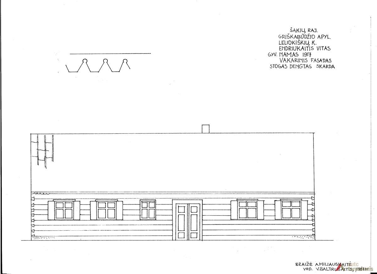 Suvalkietiškas gyvenamasis namas (stuba). Pastatytas 1917 m. Namas suręstas iš pjaustytų rąstų, suręstų į lygias kertes. Stogas gegninis, dvišlaitis, su nedideliais užlaidais, dengtas skarda. Namo skliautas vertikliai apkaltas lentomis. Pastogės karnizas saikingos kiaurapjūvio puošybos. Pagegninių sijų galai išsikišę, dekoratyvūs. Namo langai keturių dalių, su įsprūdinėmis langinėmis, puošniais tekintais antlangiais. Durys dvivėrės, įsprūdinės su plačiomis staktomis. Tradiciškai suvalkietiškas namas ilgas ir siauras, su daug patalpų.