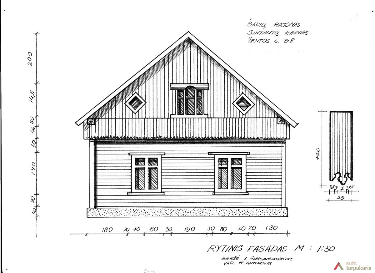 Gyvenamojo namo (stubos) stogas gegninis, dvišlaitis, su nedideliais užlaidais. XX a. pradžioje Suvalkijoje plito namai su pastogės paaukštinimu – ertikiu. Šio namo ertikis gana aukštas, apie 70 cm. Ertikis vertikaliai apkaltas lentelėmis, kurių galai užbaigti dekoratyviais pjaustiniais – ertikį puošiančiu ornamentu. Namo skliautas vertikliai apkaltas lentelėmis. Skliauto puošybą papildo maži rombo formos langeliai. Didysis skliauto langas taip pat puošnus: suskaidytas į tris dalis, jį dengia neįpratsos formos viršlangis. Namo langai dideli, plačiais rėmais. Suvalkijai nebūdinga namo kerčių puošyba. Šio namo kertės apkaltos paprastomis lentomis, kurios saugojo nuo aplinkos poveikio.