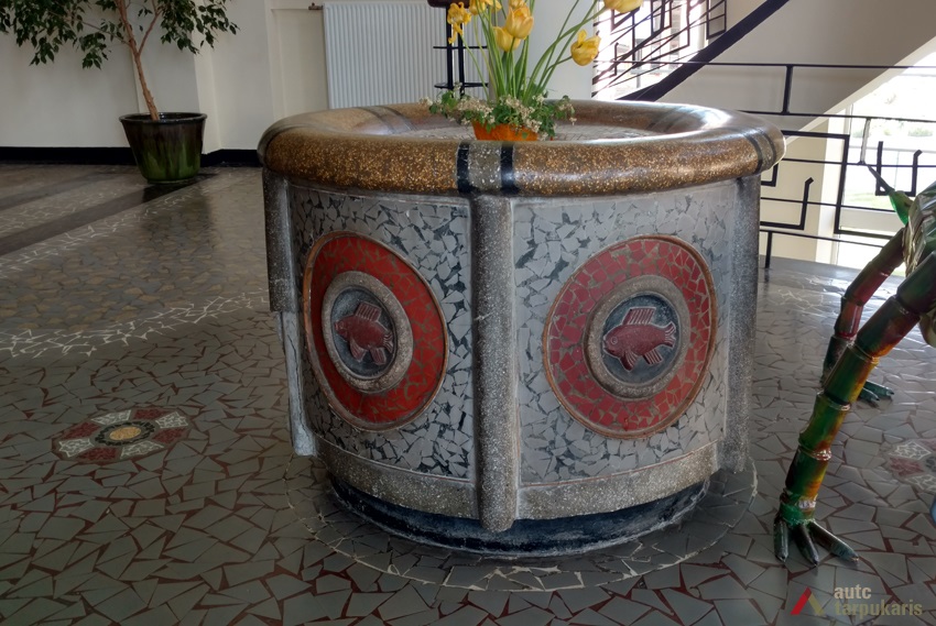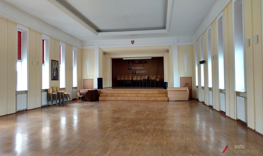 Klasėse buvo įrengtos parketo grindys (neišlikusios), rūbinėje, koridoriuje, valgykloje – teracinės (išliko tik dviejuose pagrindiniuose vestibiuliuose), sporto salėje – lentinės. Skulptorius B. Bučas 1937 m. bareljefais dekoravo gimnazijos interjerą (vienas iš jų vaizdavo prezidentą A. Smetoną mokinių būryje), sukūrė fontanėlius, kurie buvo įrengti vestibiuliuose. Mokyklinis inventorius buvo įsigytas iš Kauno baldų dirbtuvių. Šiuo metu klasėse galime matyti atidengus A. Smetonos bei vyčio bareljefus.