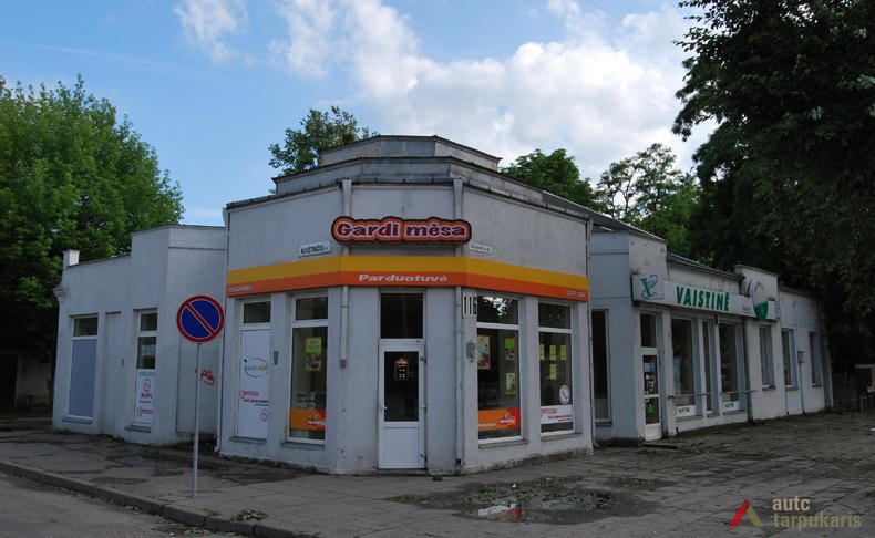 Kauno Kristaus Prisikėlimo bažnyčios klebono prašymas statyti krautuvei su sandėliais buvo įteiktas 1929 m. [1] Tuo pat metu kartu su krautuvėle architektas A. Jokimas buvusiame Aukštaičių g. 4 sklype prie klebonijos namų suprojektavo ir medinį priestatą[2]. Laužyta fasado plokštuma bei laiptuotas kampinis bokštelis savuoju tūriu santūriai intrpretuoja art deco stilistiką. Statinys įdomus ir kaip funkcinio tipo reprezentantas. Anuomet tai buvo vienas iš modernesnių objektų, skirtų nedidelės apimties prekybai. 2012 m. parduotuvėlė buvo rekonstruota (arch. Š. ir A. Kiaunės)[3].